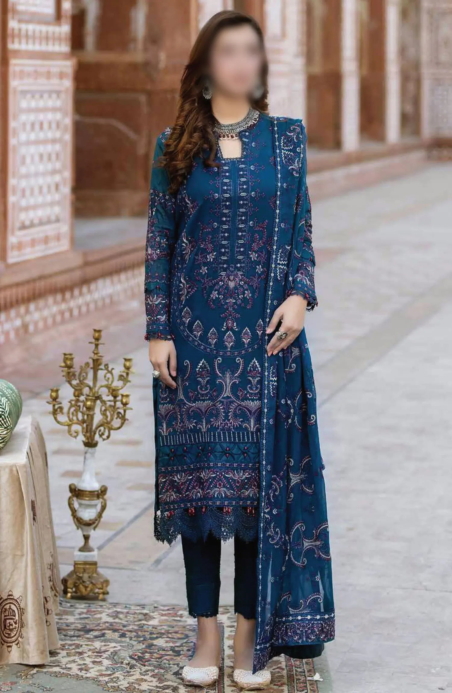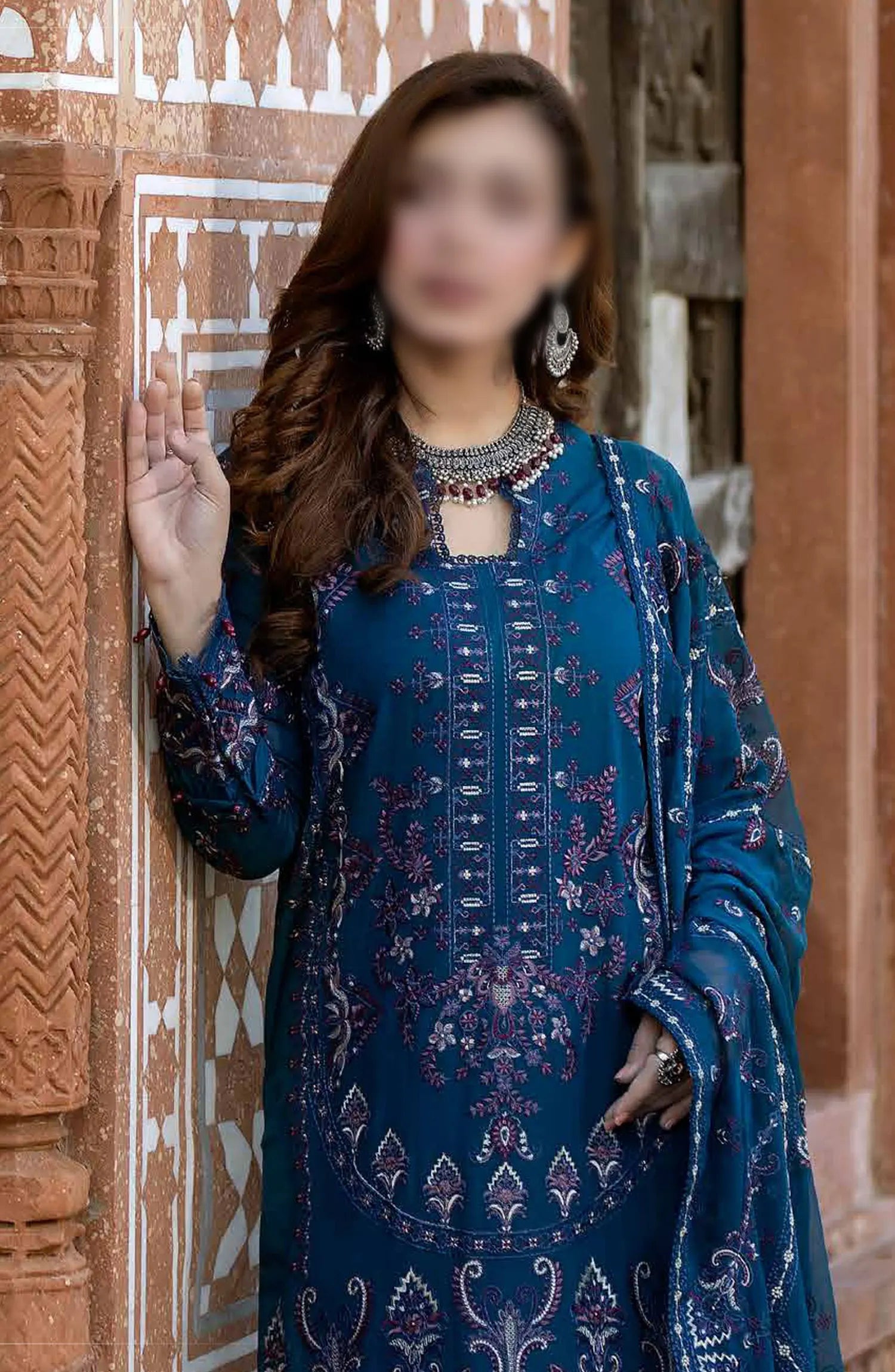 Afsana by Peridot Embroidered Khaddar Unstitched 3 Piece Suit - 488-B - PT25AF - Blue - Winter Collection