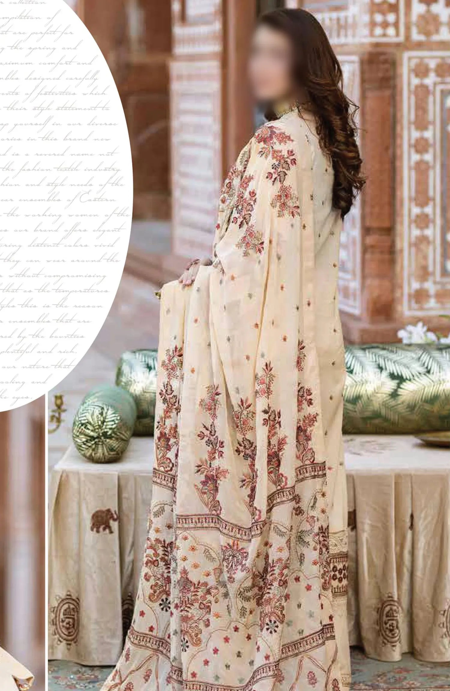 Johra Gold Embroidered Swiss Voile Collection 2024 has been styled in the image for photography and illustrative purposes.