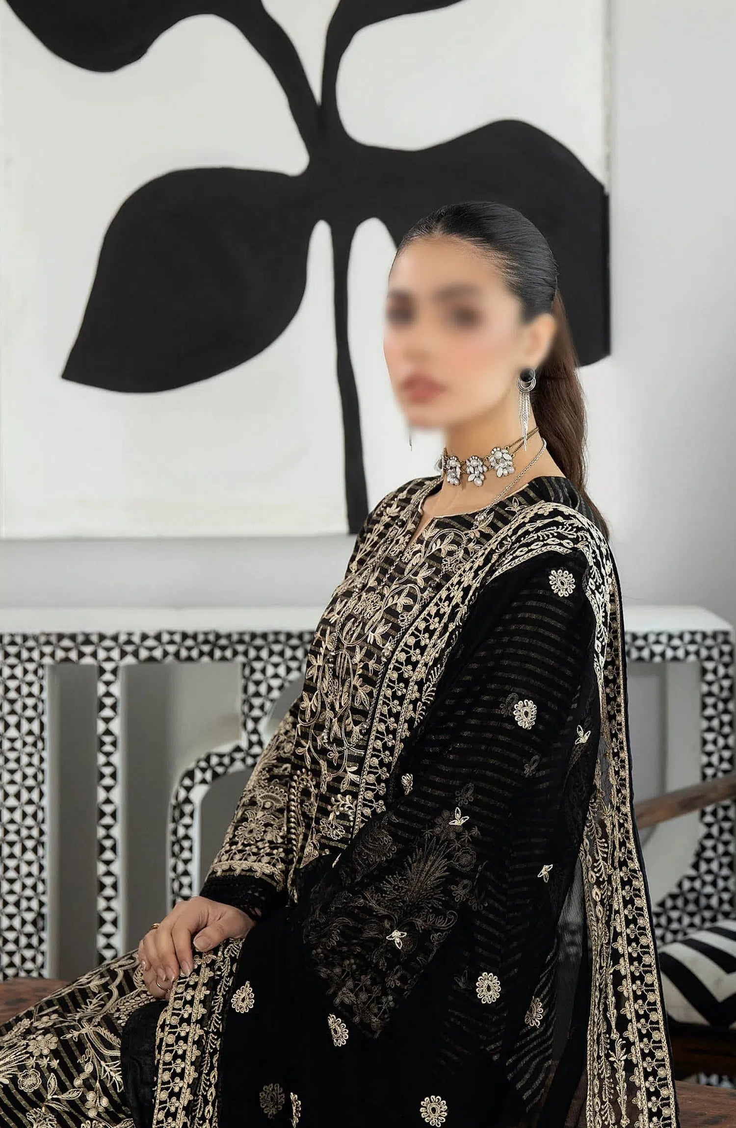 Modest Embroidered Khaddar Stitched 3 Piece Suit - 9990-Blk - MOD25WNT - Black - Winter Collection