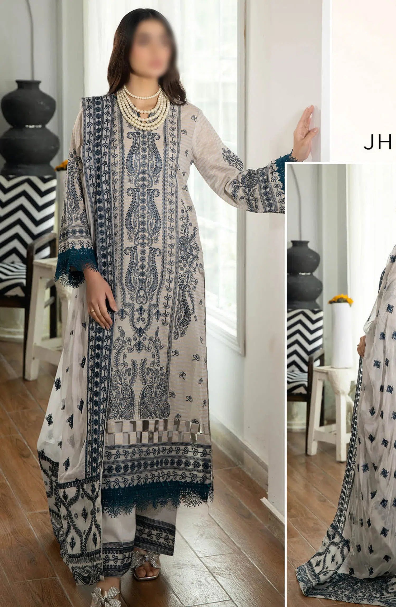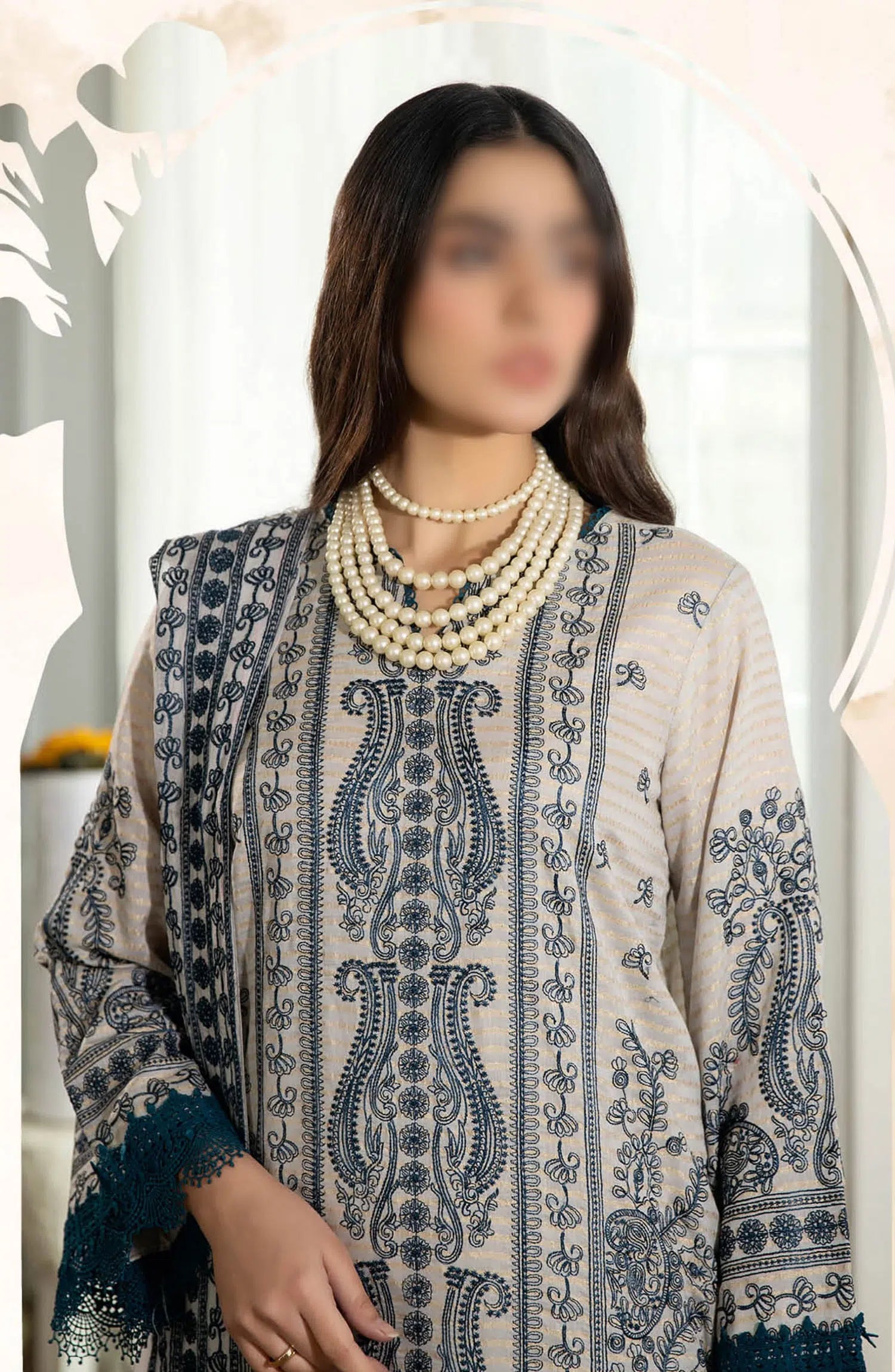 Johra Jahan Ara Embroidered Banarsi Jacquard Lawn Collection has been styled in the image for photography and illustrative purposes.