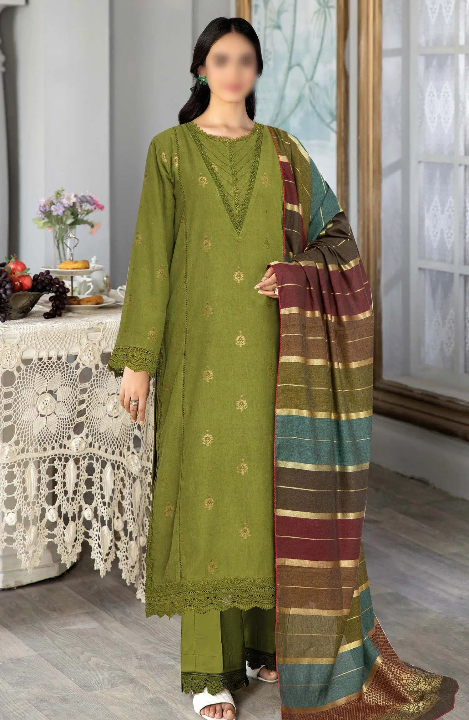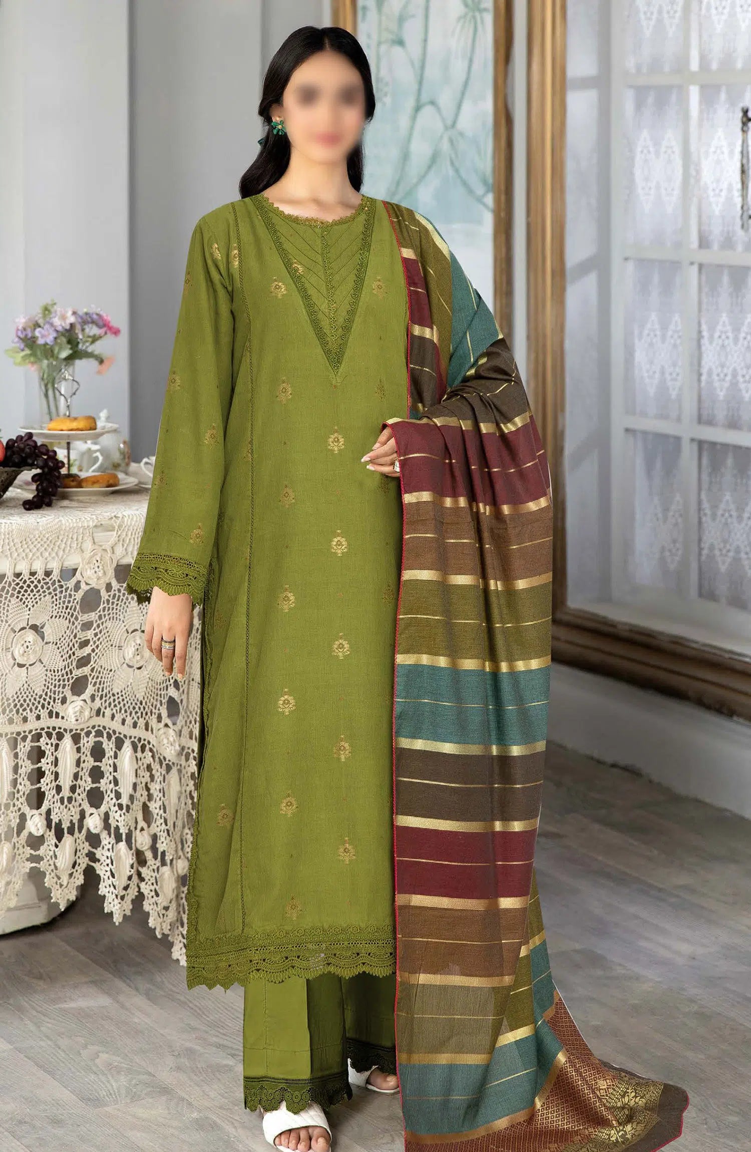 Modest Embroidered Khaddar Stitched 3 Piece Suit - 10040-Pnk - MOD25WNT - Pink - Winter Collection
