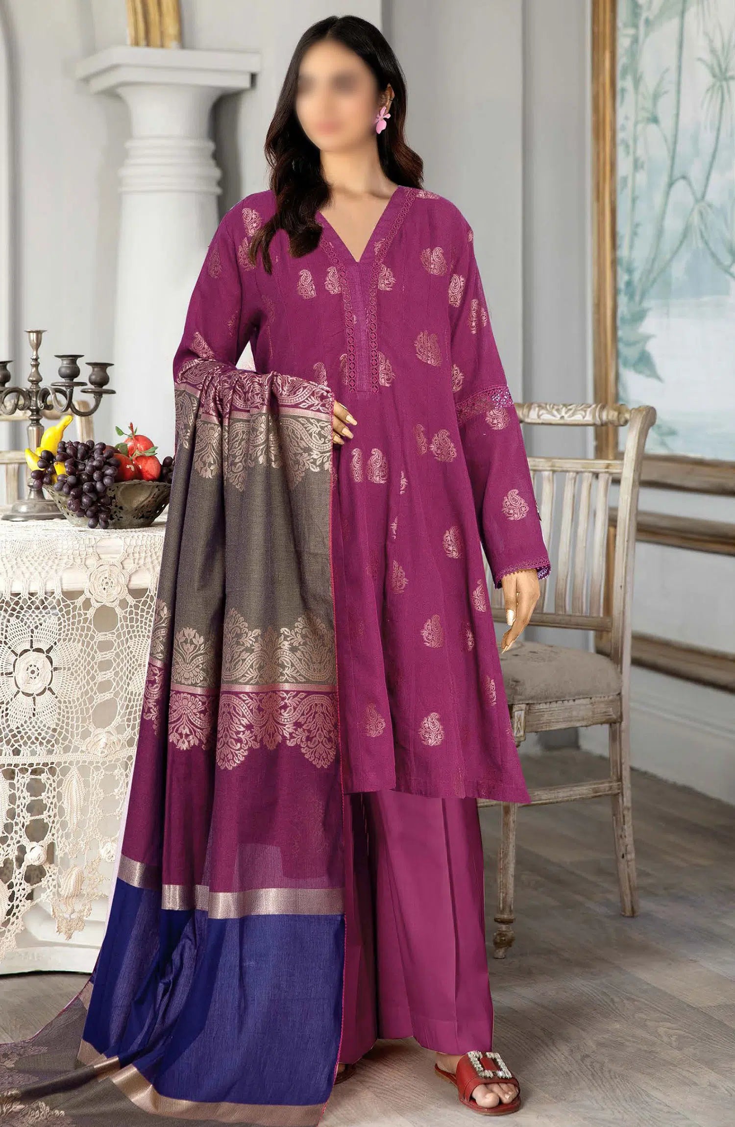 Modest Embroidered Khaddar Stitched 3 Piece Suit - 10050-Mar - MOD25WNT - Maroon - Winter Collection