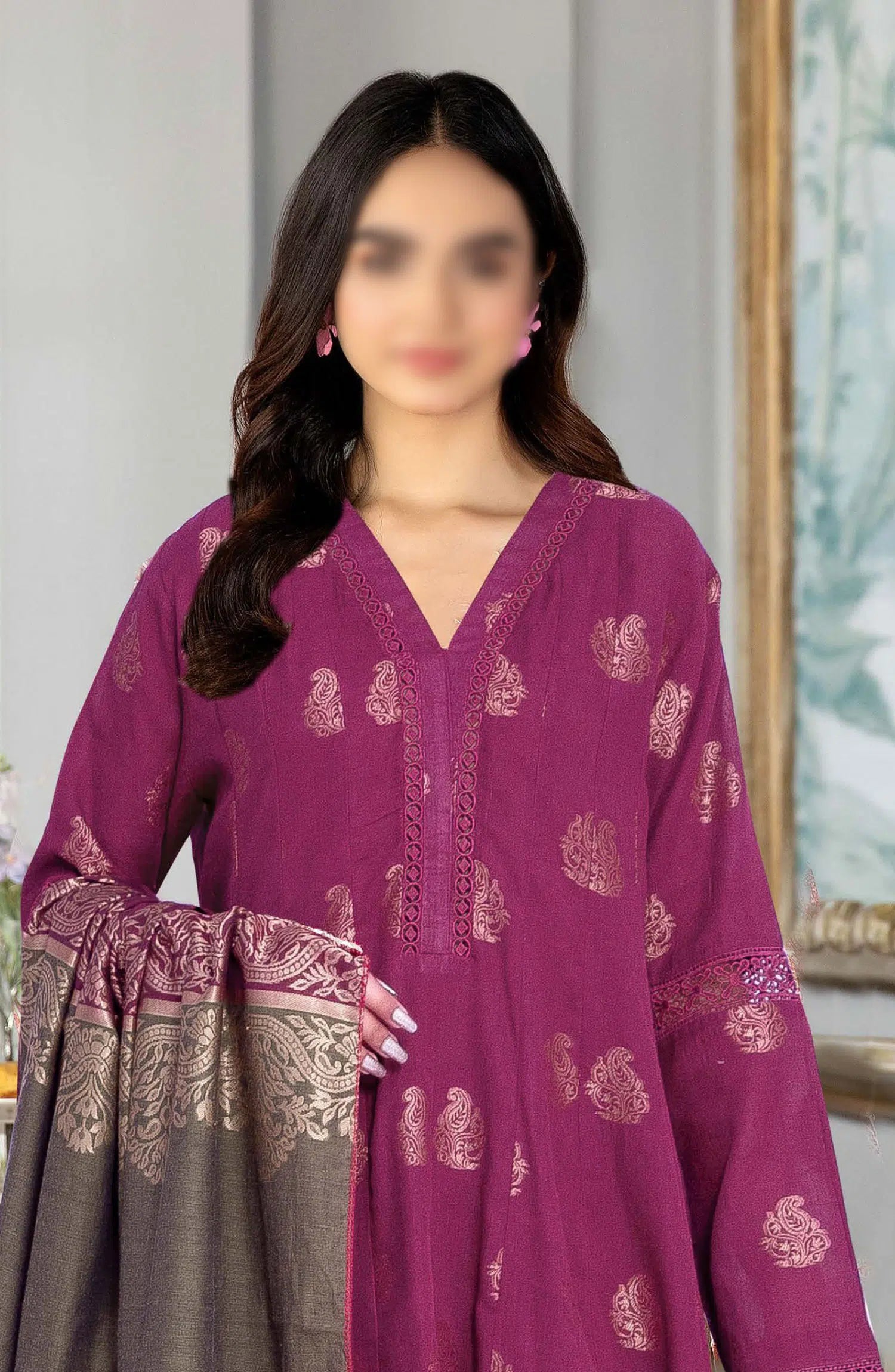 Modest Embroidered Khaddar Stitched 3 Piece Suit - 10040-Pnk - MOD25WNT - Pink - Winter Collection