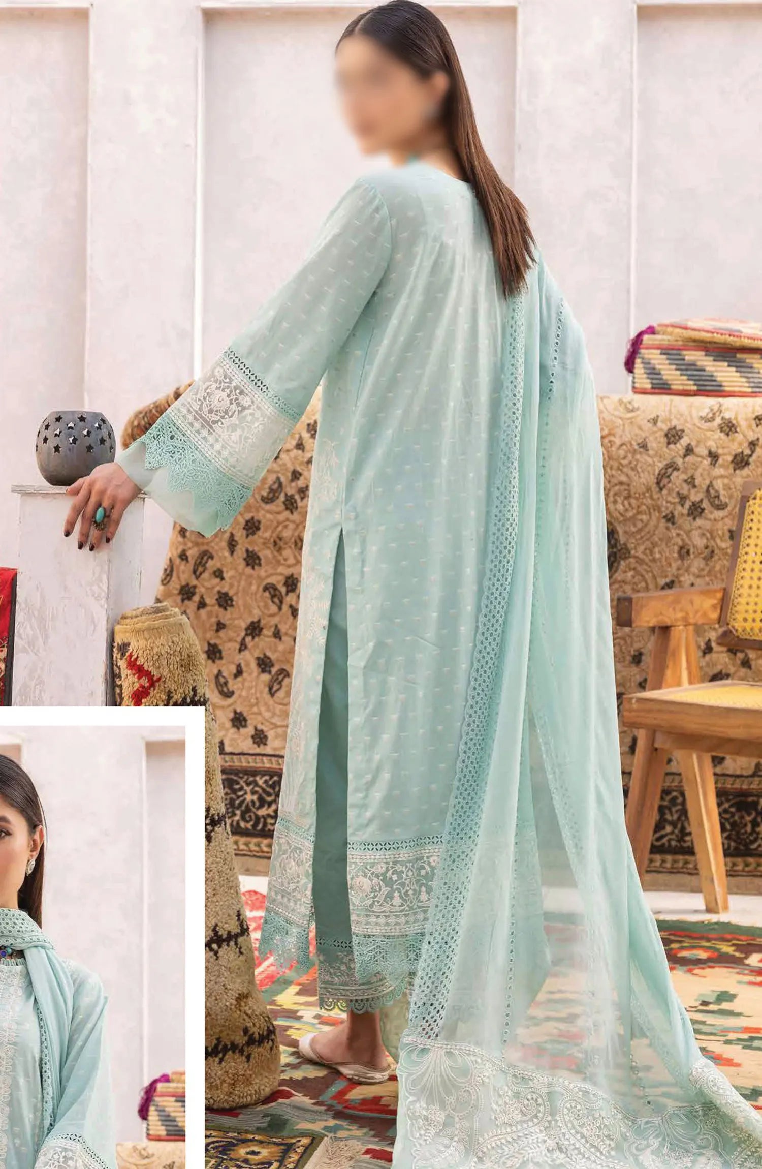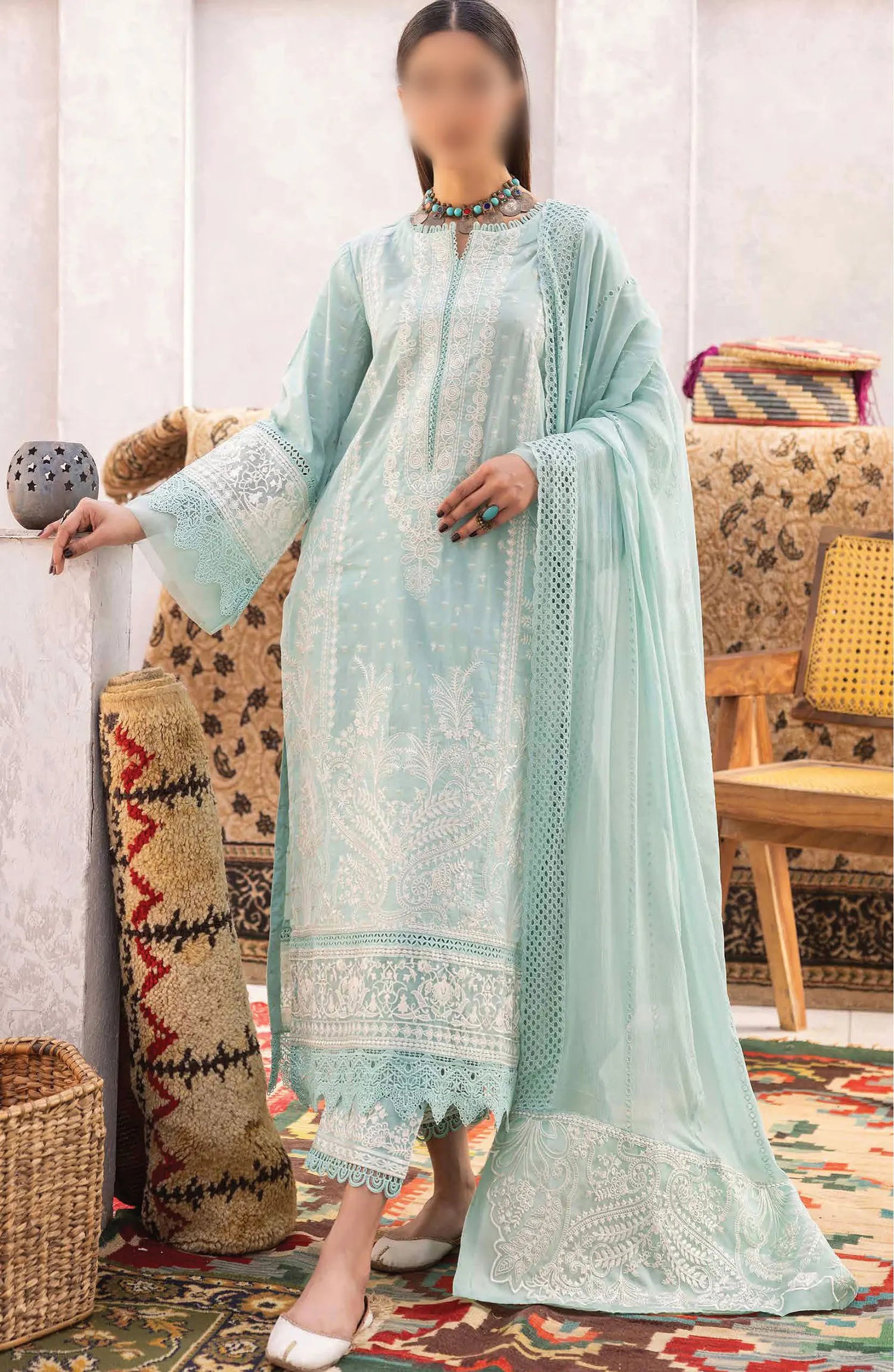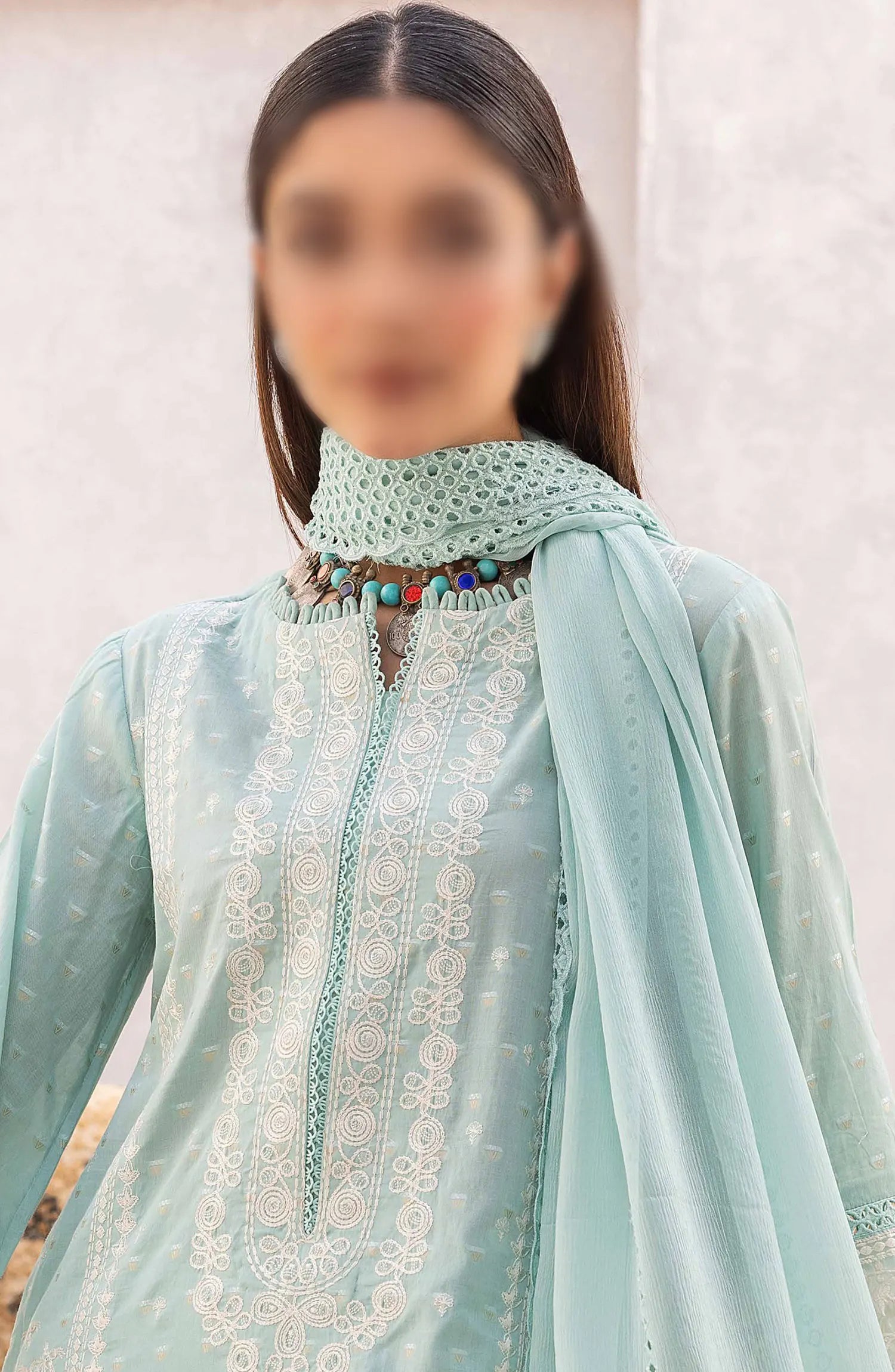 Johra Naqsh Embroidered Banarsi Jacquard Lawn Collection has been styled in the image for photography and illustrative purposes.