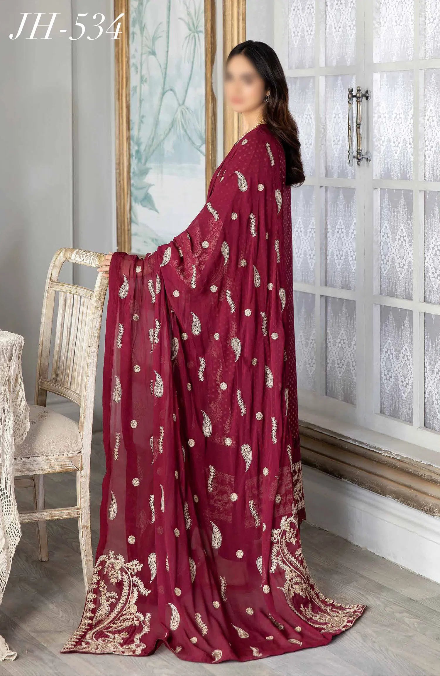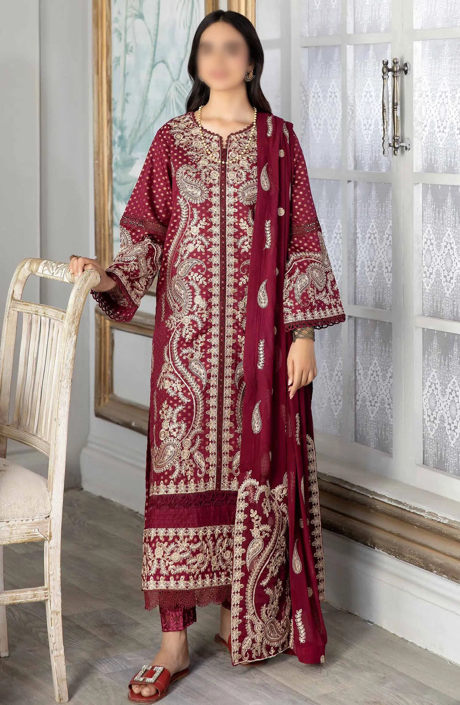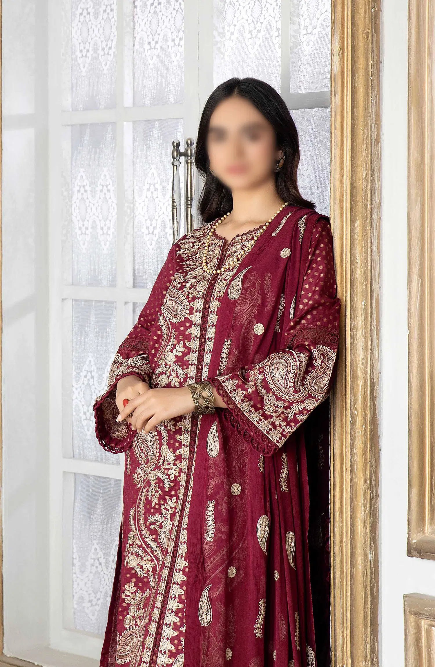 Modest Embroidered Khaddar Stitched 3 Piece Suit - 10050-Mar - MOD25WNT - Maroon - Winter Collection