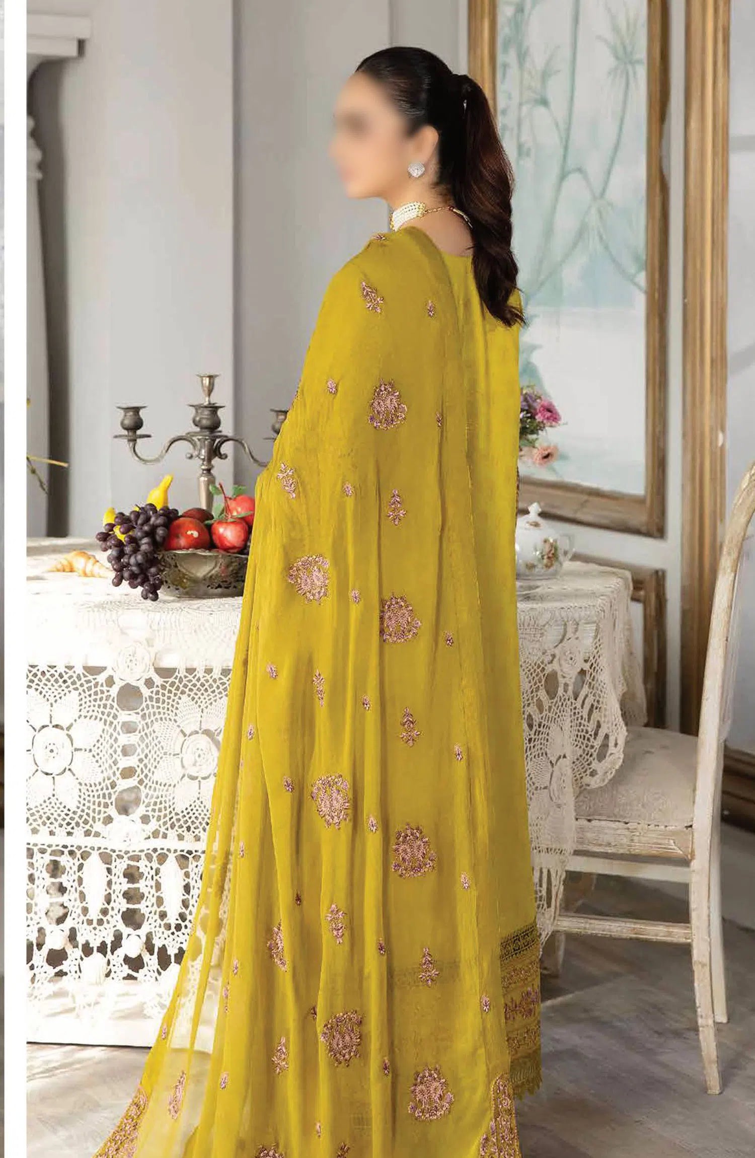 Maryams Luxury Embroidered Chiffon Unstitched 3 Piece Suit - Nyra-ARZ-9006 - MAR25LF - Mustard - Festive Collection