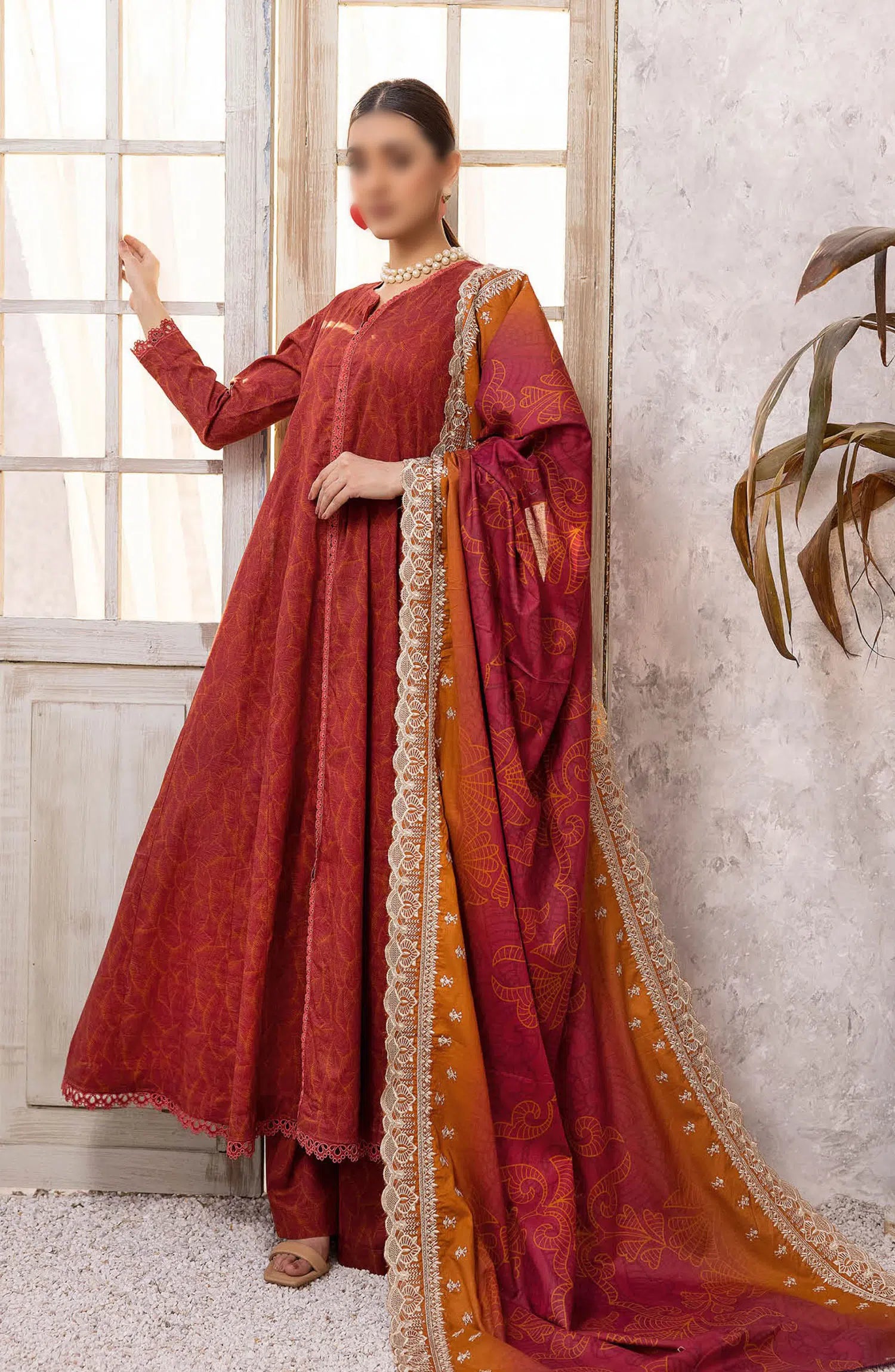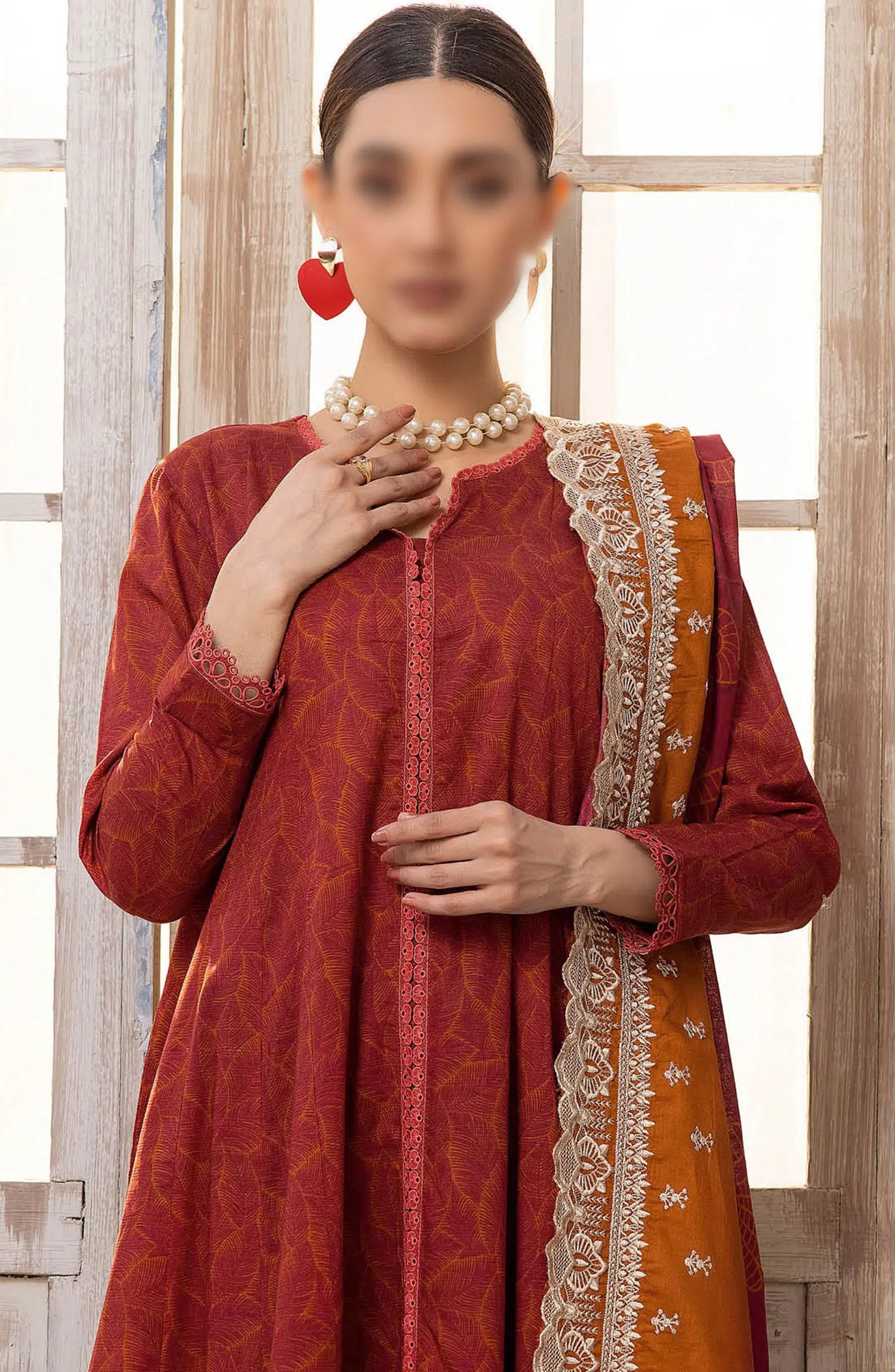 Zara by Johra Printed Lawn Unstitched 3 Piece Suit - JH-1495 - JH25ZARA - Maroon - Casual Collection