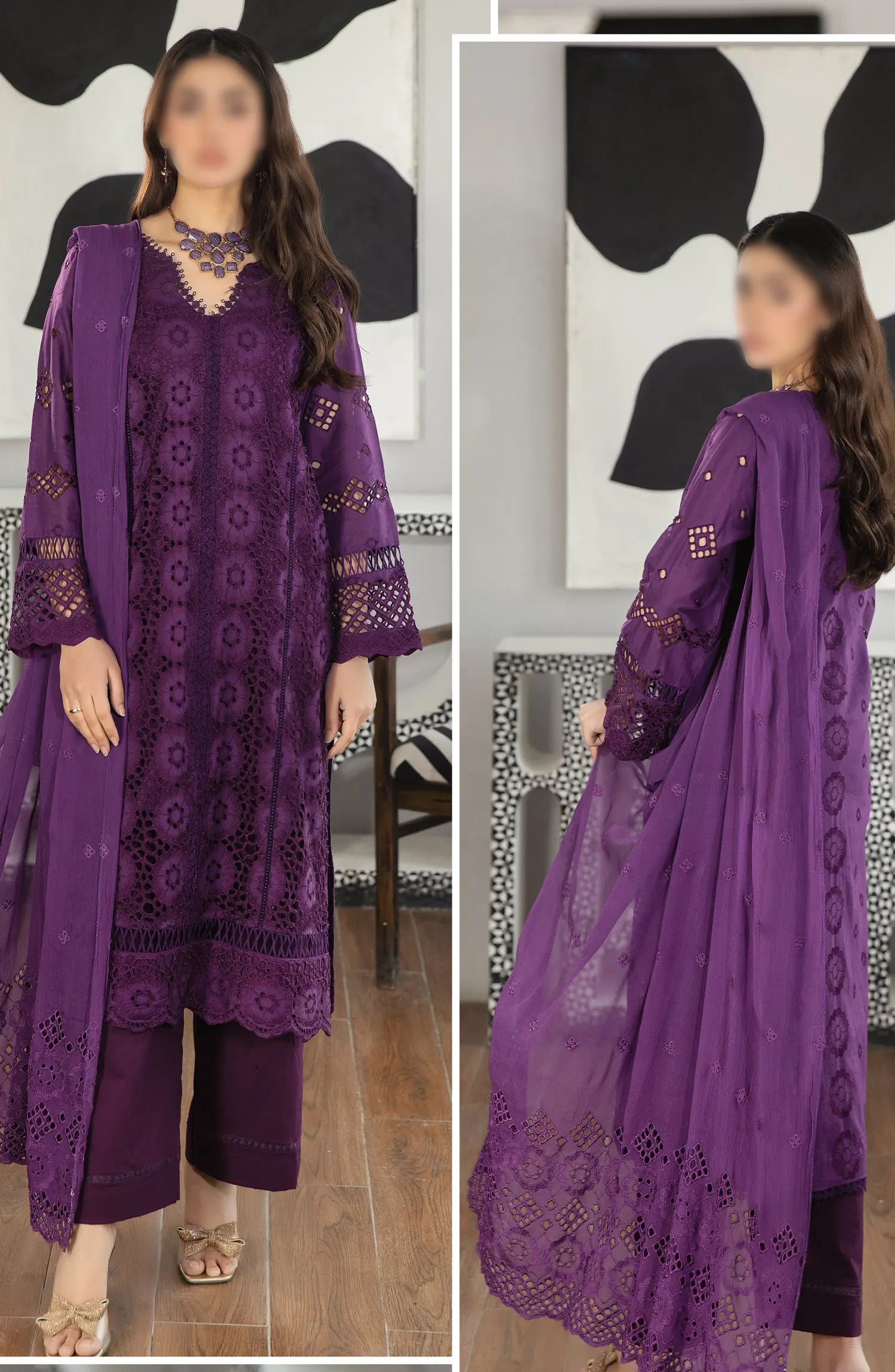 Johra Uzuri Chikankari Lawn Collection 2024 has been styled in the image for photography and illustrative purposes.