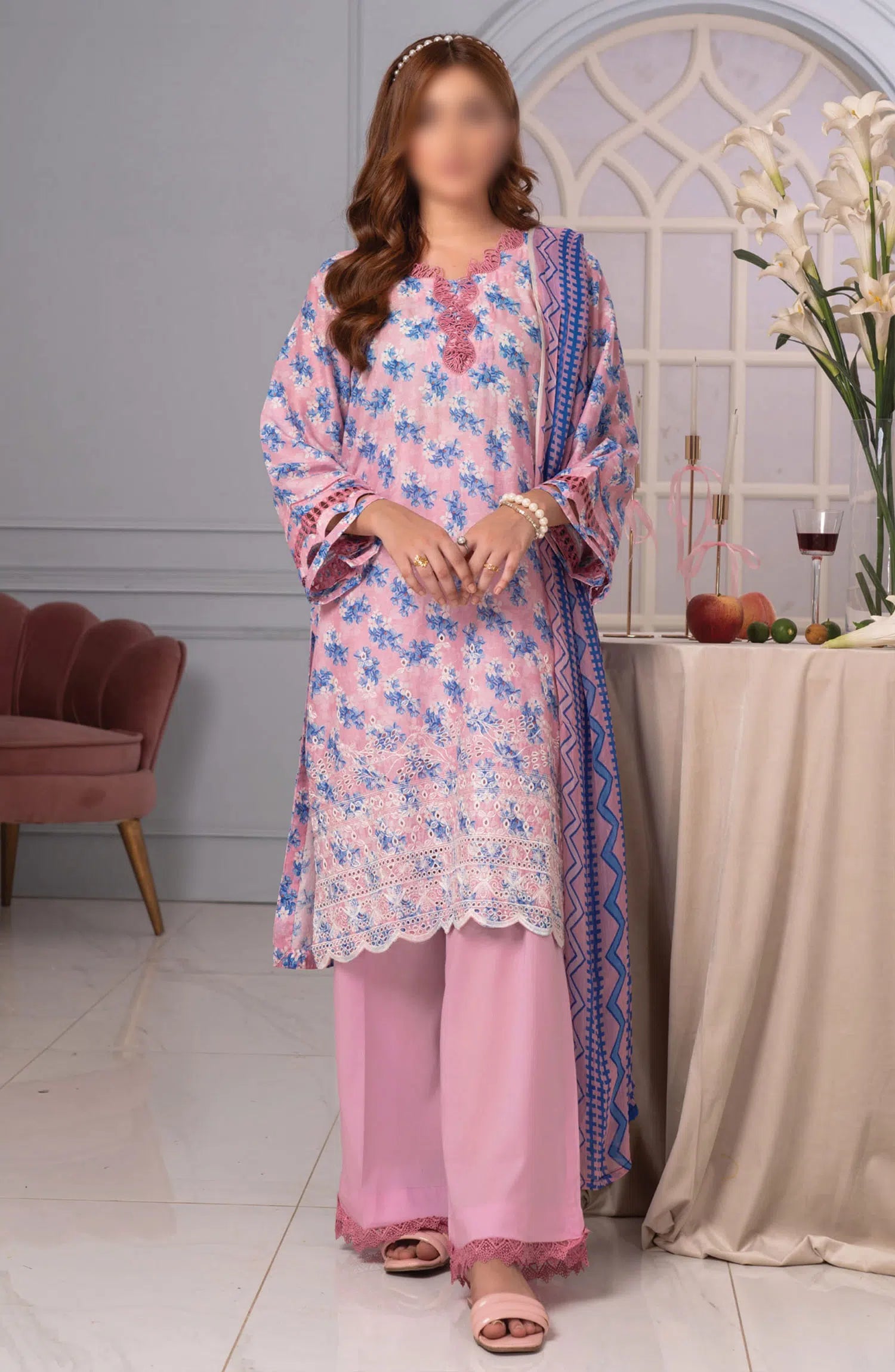 Johra Zoya Embroidered Printed Chikankari Lawn Collection 2024 has been styled in the image for photography and illustrative purposes.