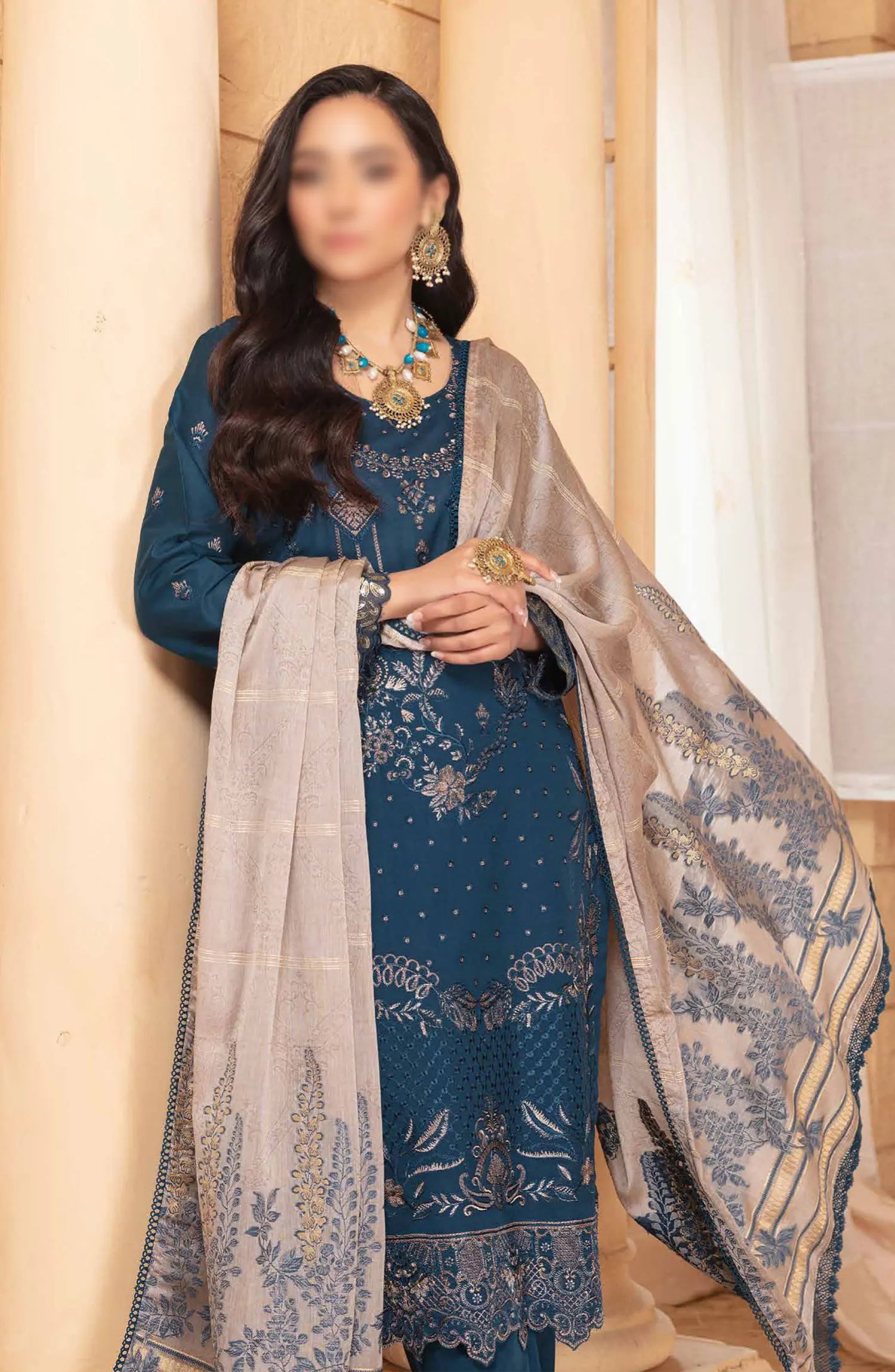 Shaista Supreme Embroidered Peach Unstitched 3 Piece Suit - D-92 - SHS25SP - Blue - Winter Collection