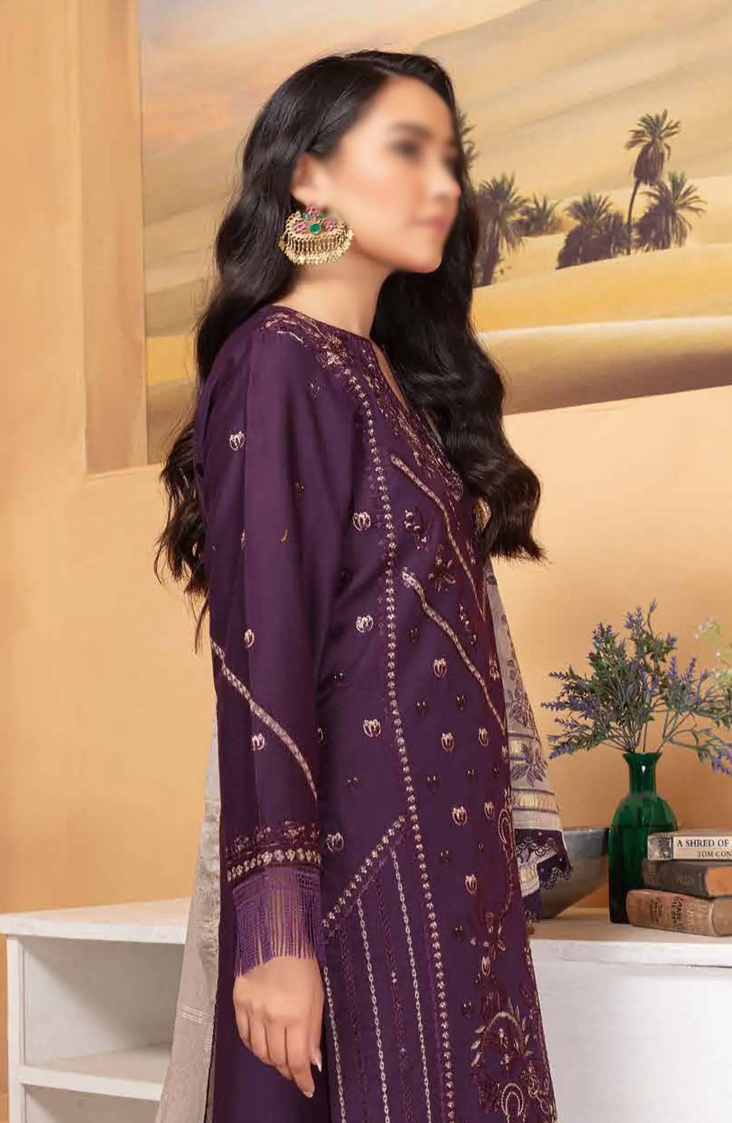 Shaista Supreme Embroidered Peach Unstitched 3 Piece Suit - D-90 - SHS25SP - Purple - Winter Collection