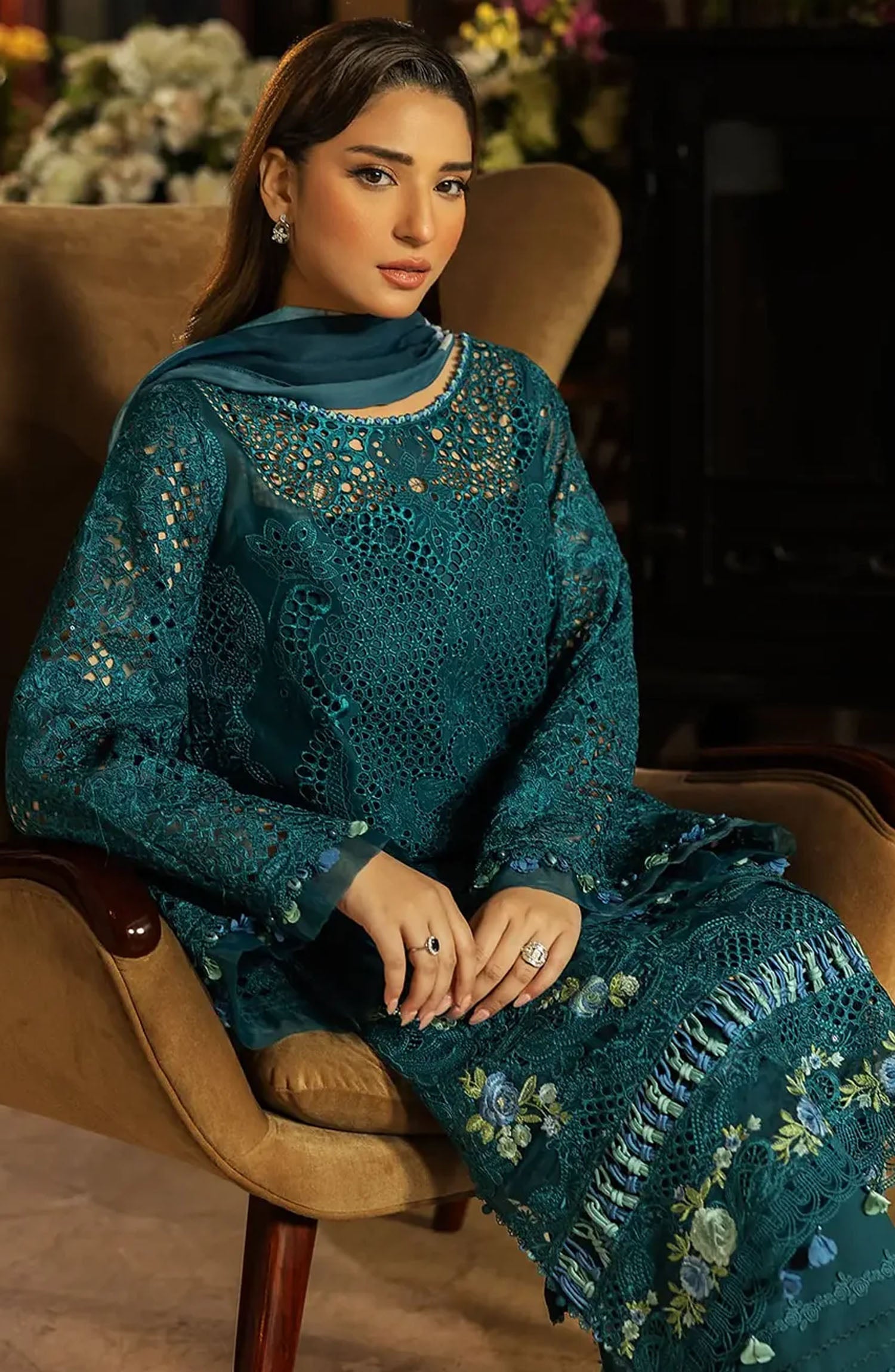 Embroidered Organza Front Daman + Sleeves Border: 1.80 Meter