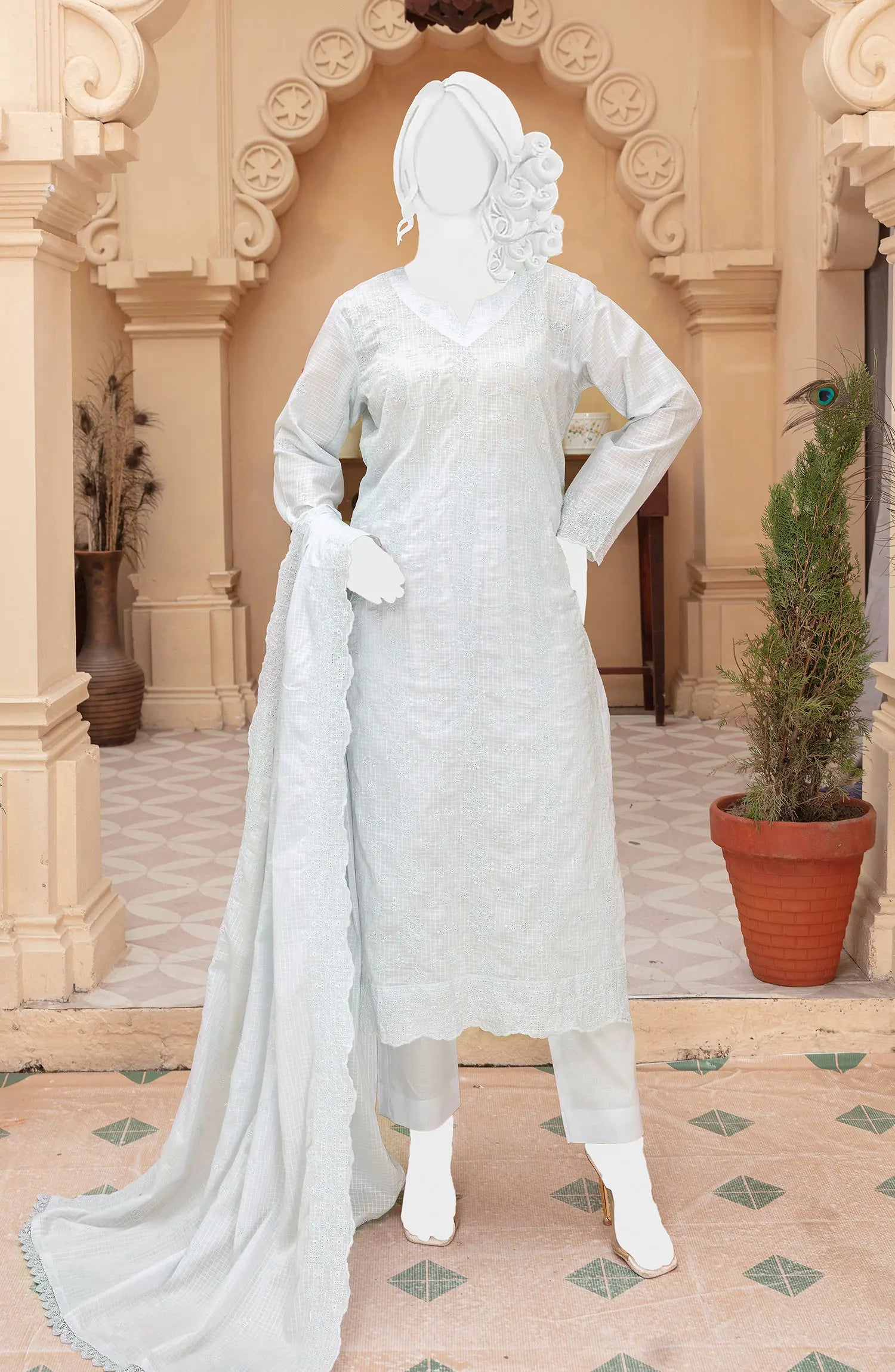 The standard style comes as a long-sleeved kameez with dupatta and trouser/shalwar.