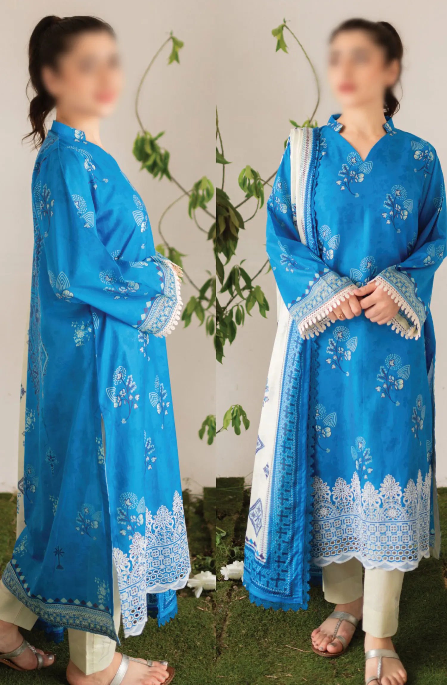 Kaira Embroidered Lawn Collection 2024 By Rashid Textile has been styled in the image for photography and illustrative purposes.