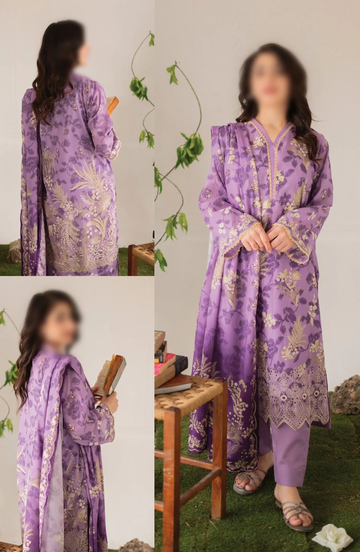 Kaira Embroidered Lawn Collection 2024 By Rashid Textile has been styled in the image for photography and illustrative purposes.