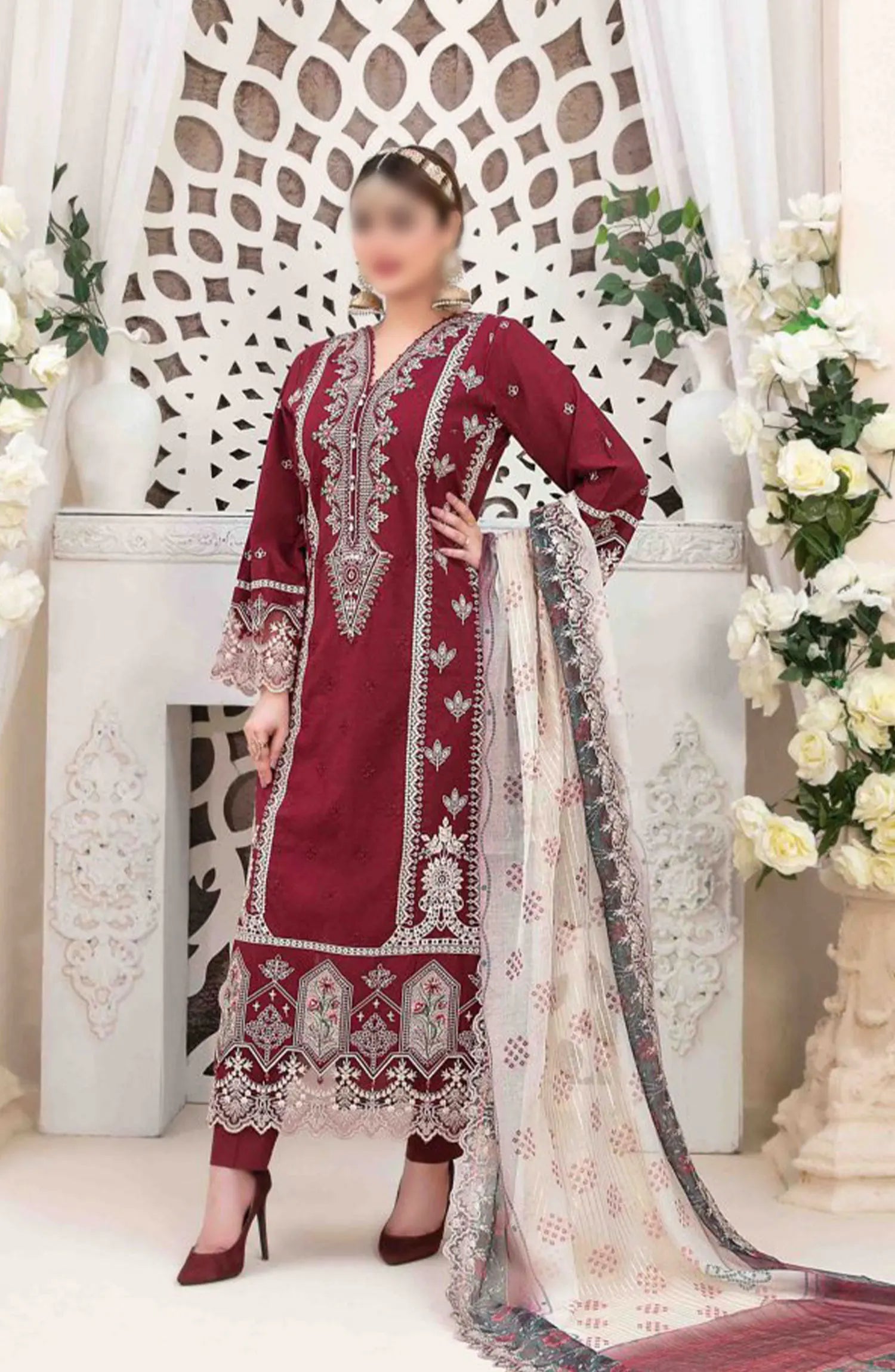 Modest Embroidered Chiffon Stitched 3 Piece Suit - 9840-Cblu - MOD25PRF - Blue - Festive Girls Collection