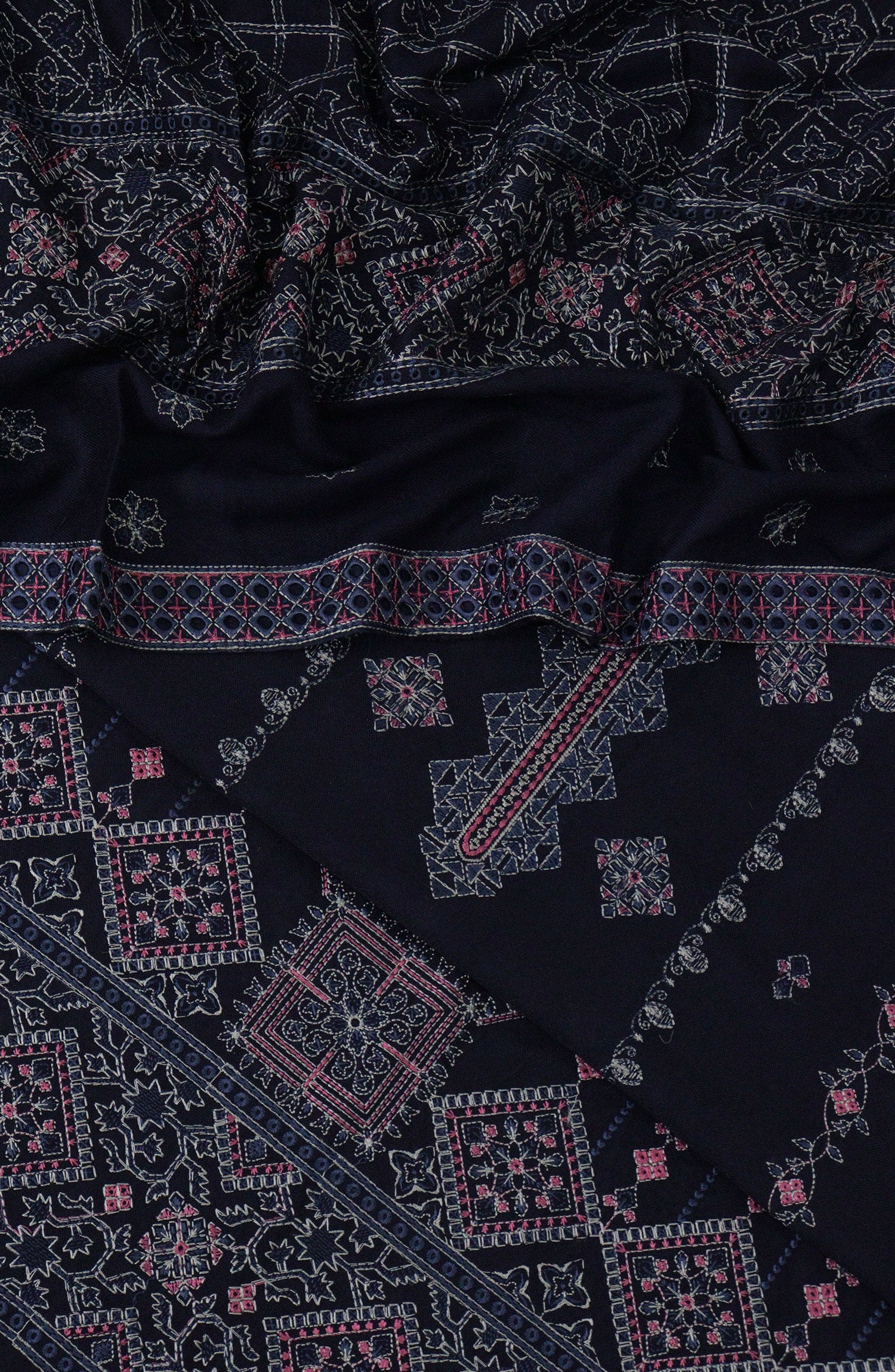 Embroidered wool shawl