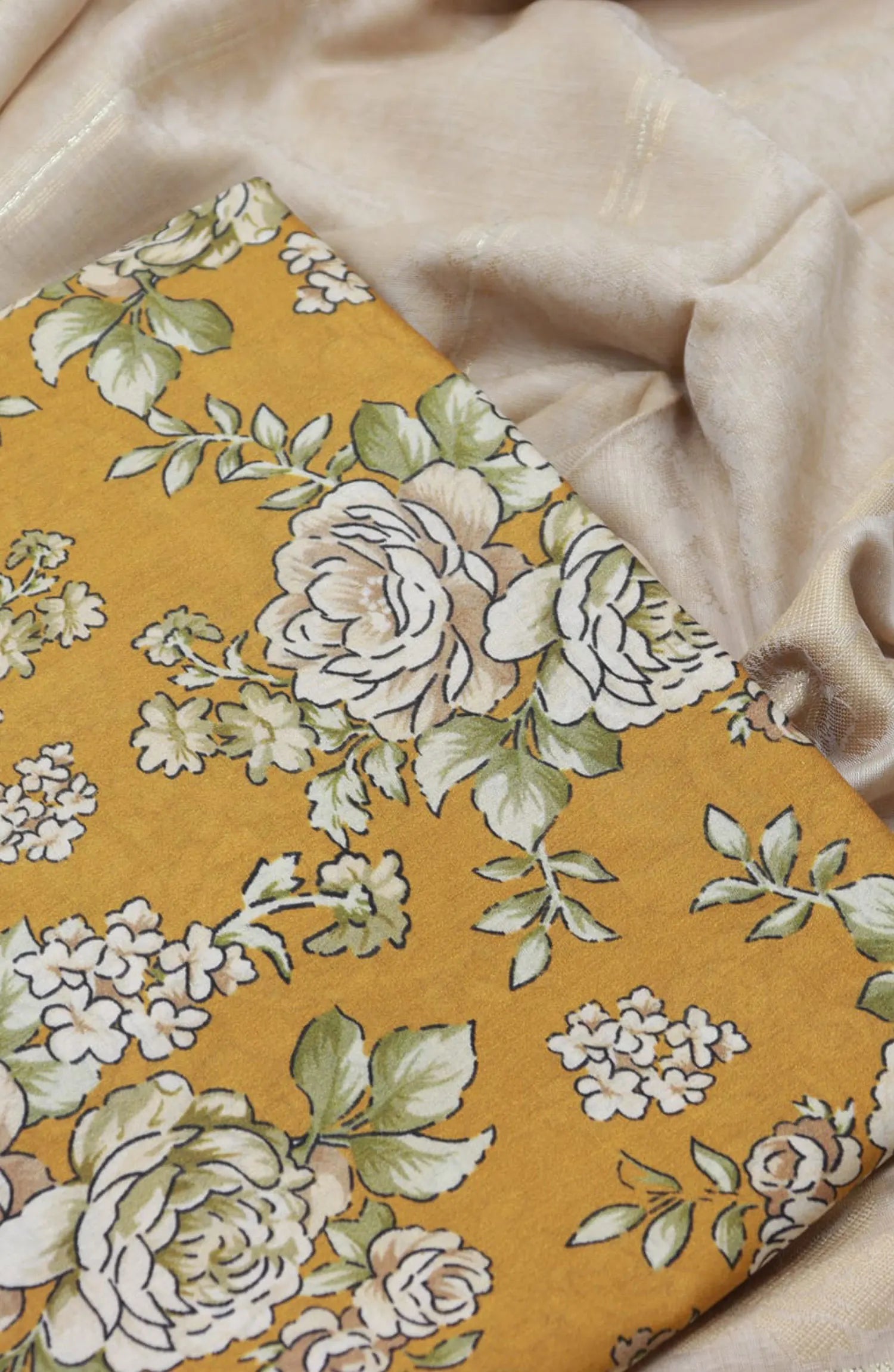 HZ Textile Digital Printed Linen Slub Unstitched 3 Piece Suit - LSD-309 - HZ25LNSL - Mustard - Winter Collection