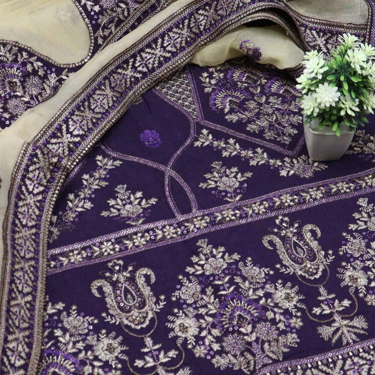 Kashish Unstitched Embroidered Leather Peach Collection has been styled in the image for photography and illustrative purposes.