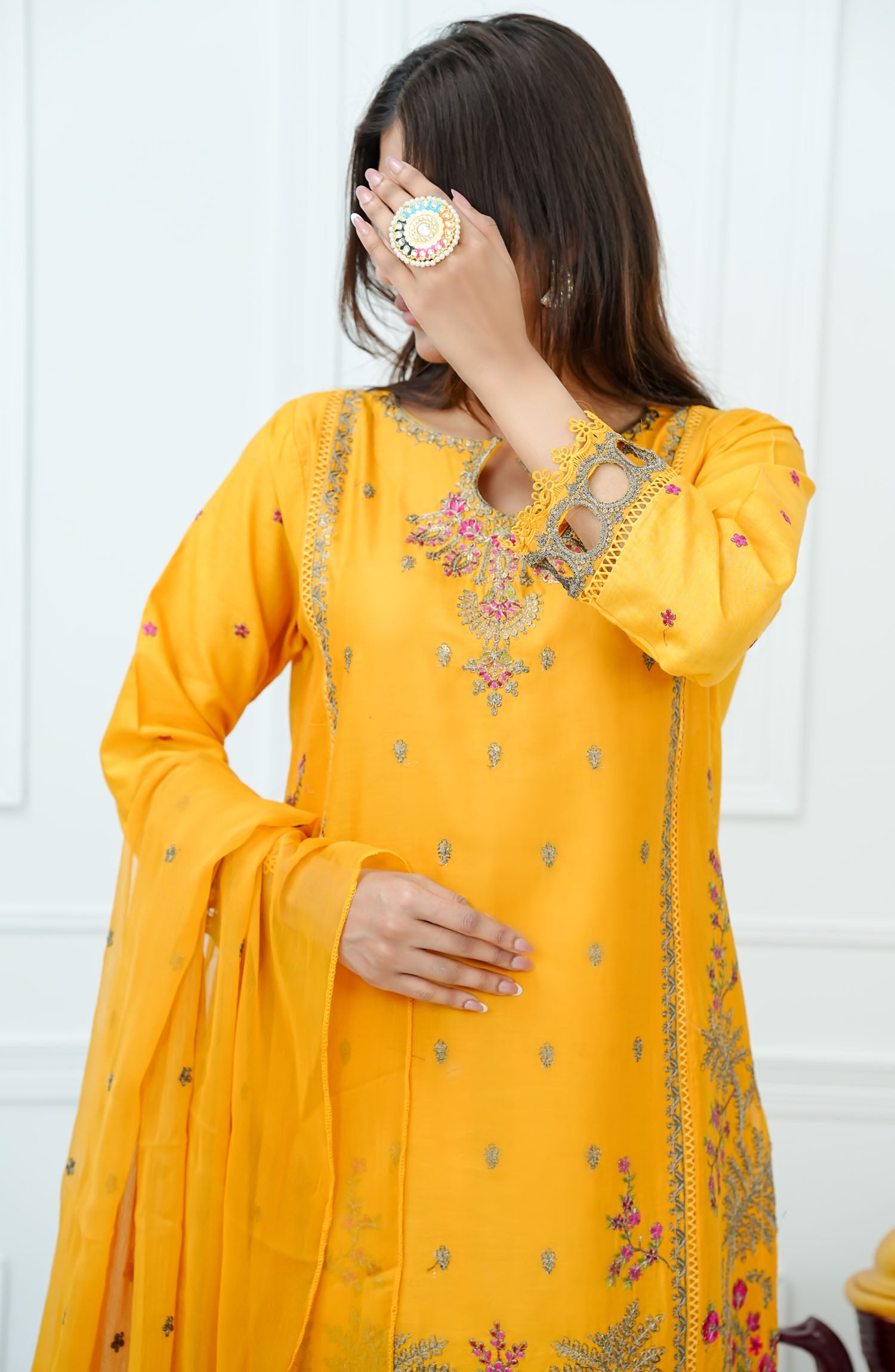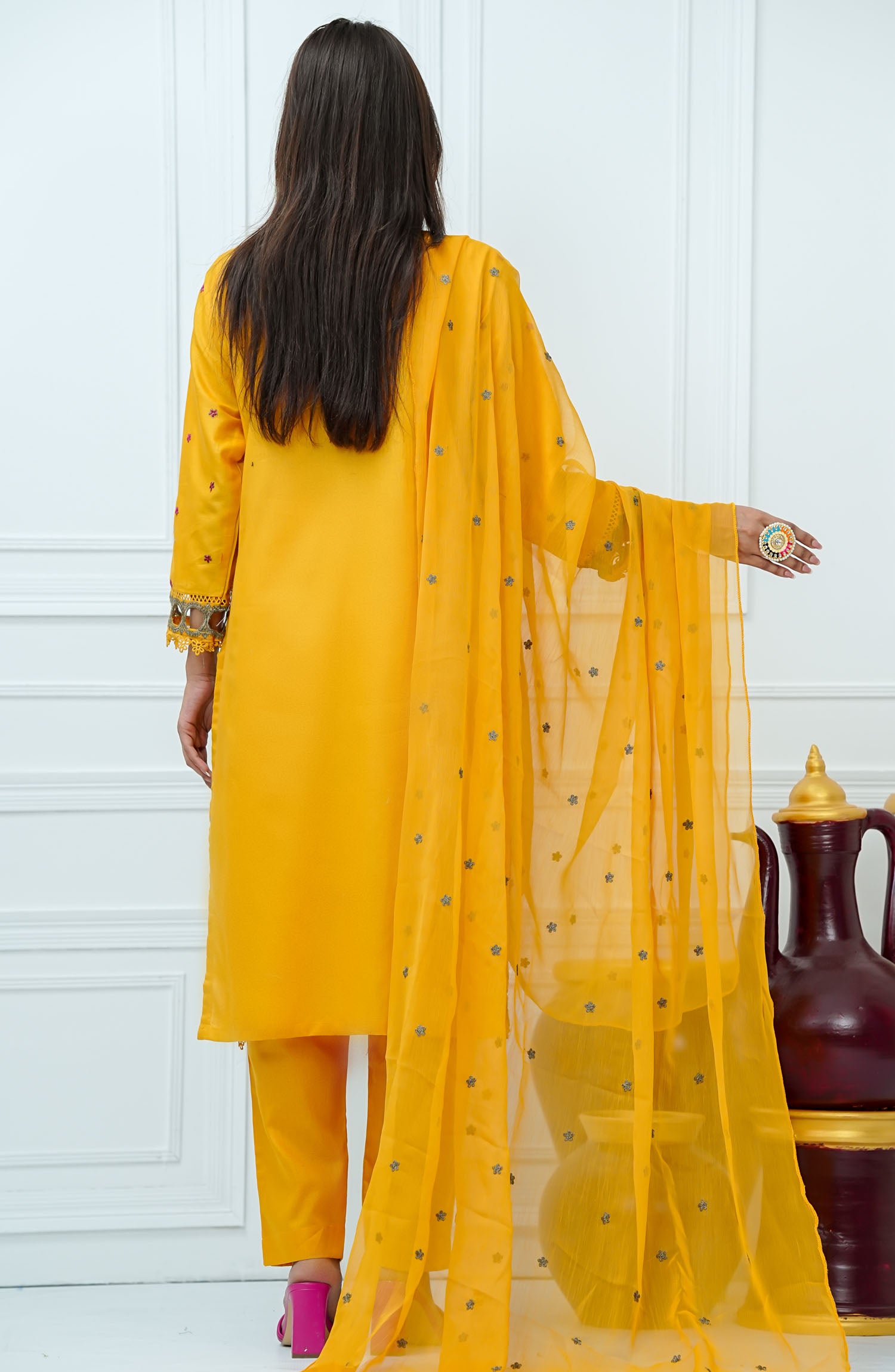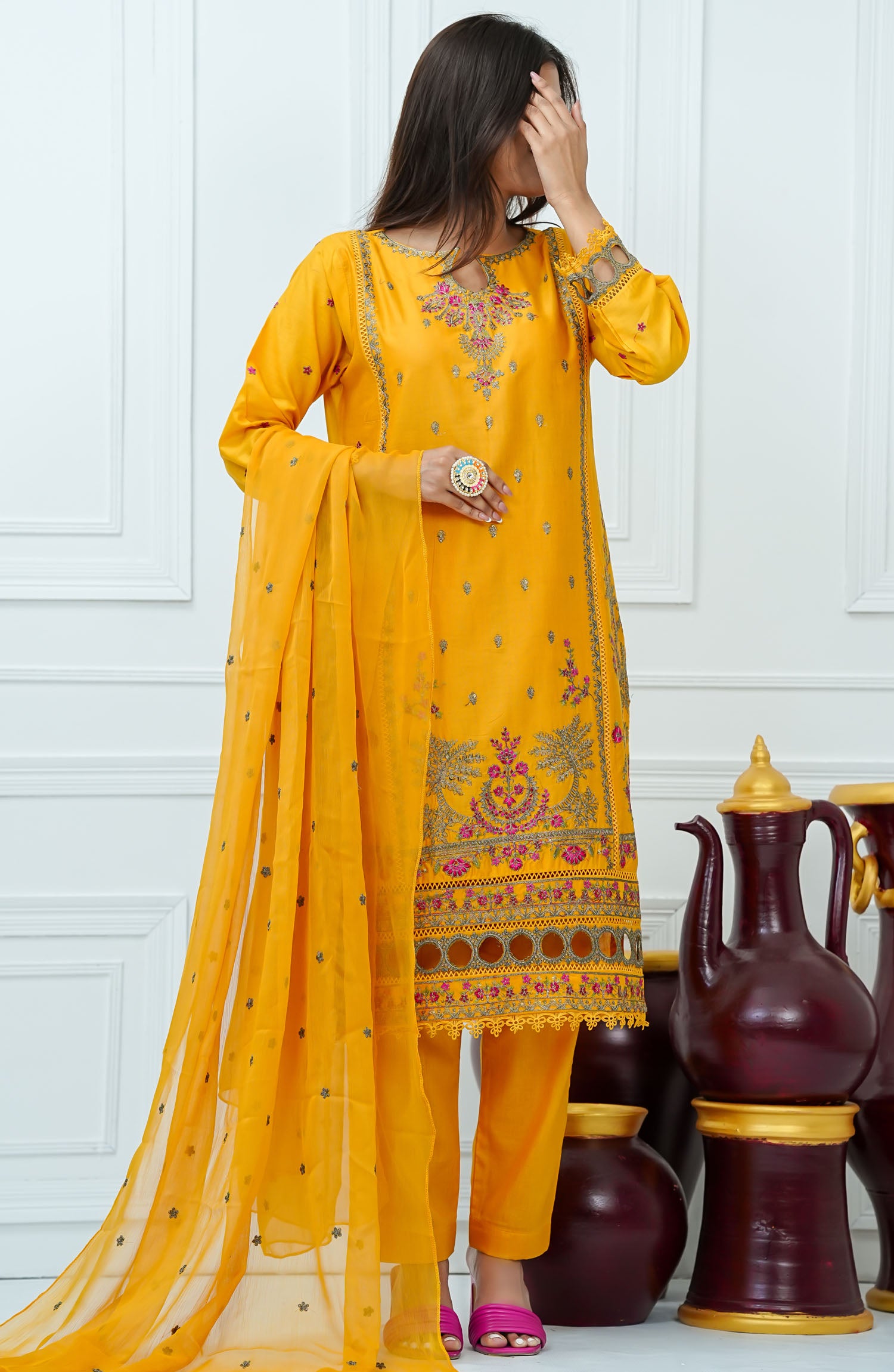 The standard style comes as a long-sleeved kameez with dupatta and trouser/shawlar.