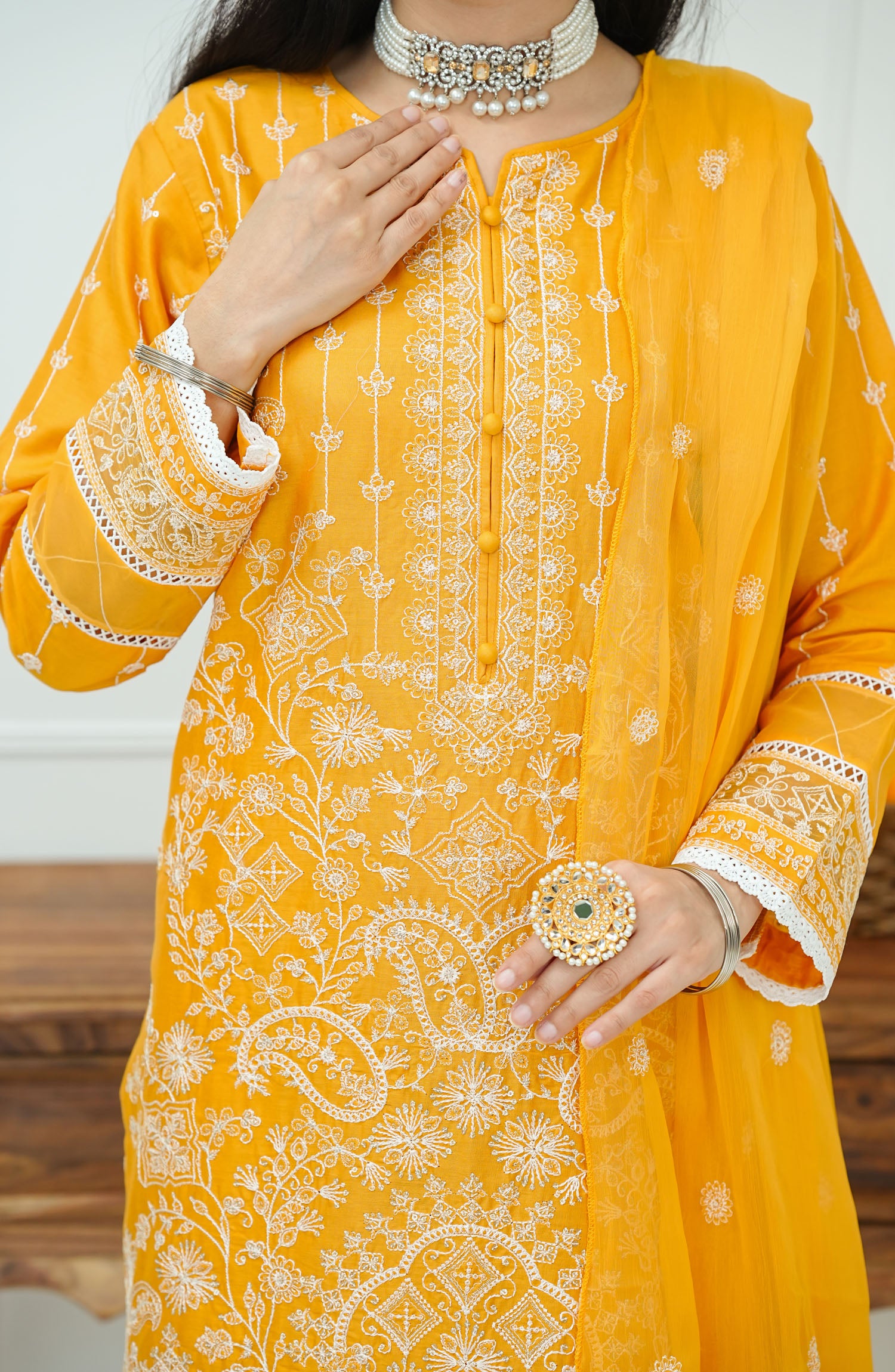 The standard style comes as a long-sleeved kameez with dupatta and trouser/shawlar.
