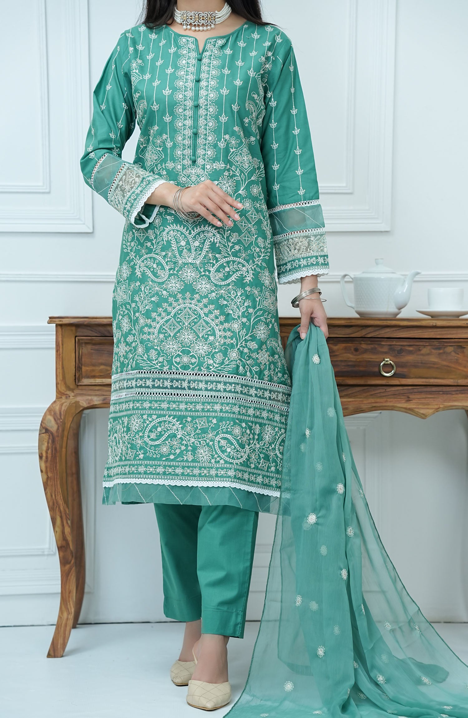 Home Kastoor by Amna Khadija Embroidered Lawn Stitched 3 Piece Suit - KLP-05 - AM25KSL - Sea Green - Summer Collection