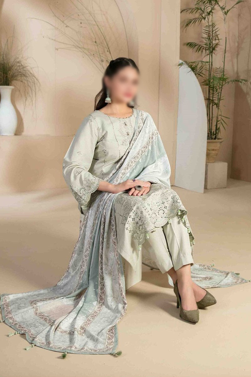 KENZA Embroidered Zari Karrandi with Velvet Shawl Collection 2023 has been styled in the image for photography and illustrative purposes.