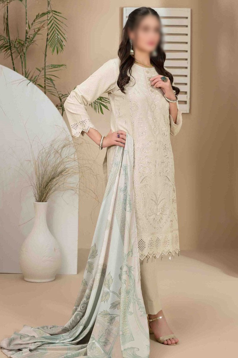KENZA Embroidered Zari Karrandi with Velvet Shawl Collection 2023 has been styled in the image for photography and illustrative purposes.