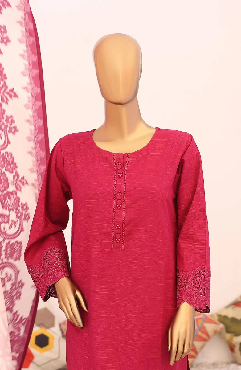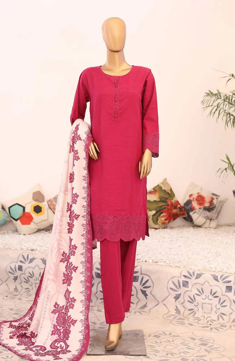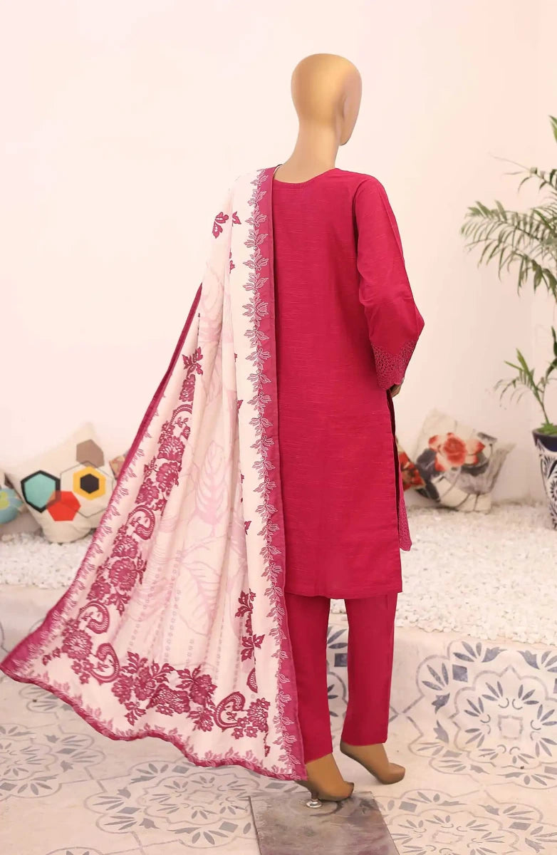Modest Embroidered Raw Silk Stitched 3 Piece Suit - 9975-Pnk - MOD25PRF - Pink - Festive Girls Collection