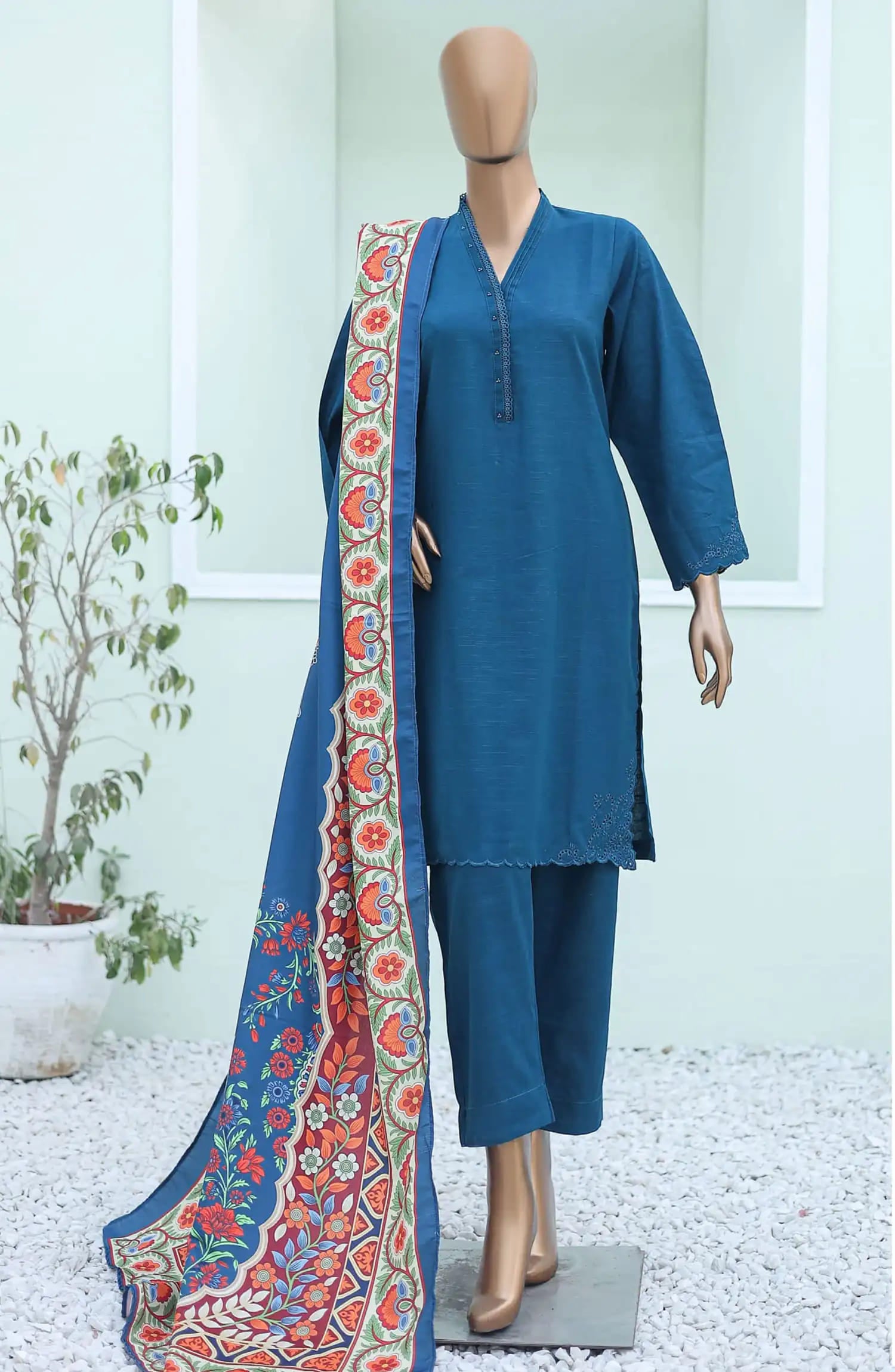 3 Piece Embroidered Khaddar Stithced Suit with Wool Shawl.