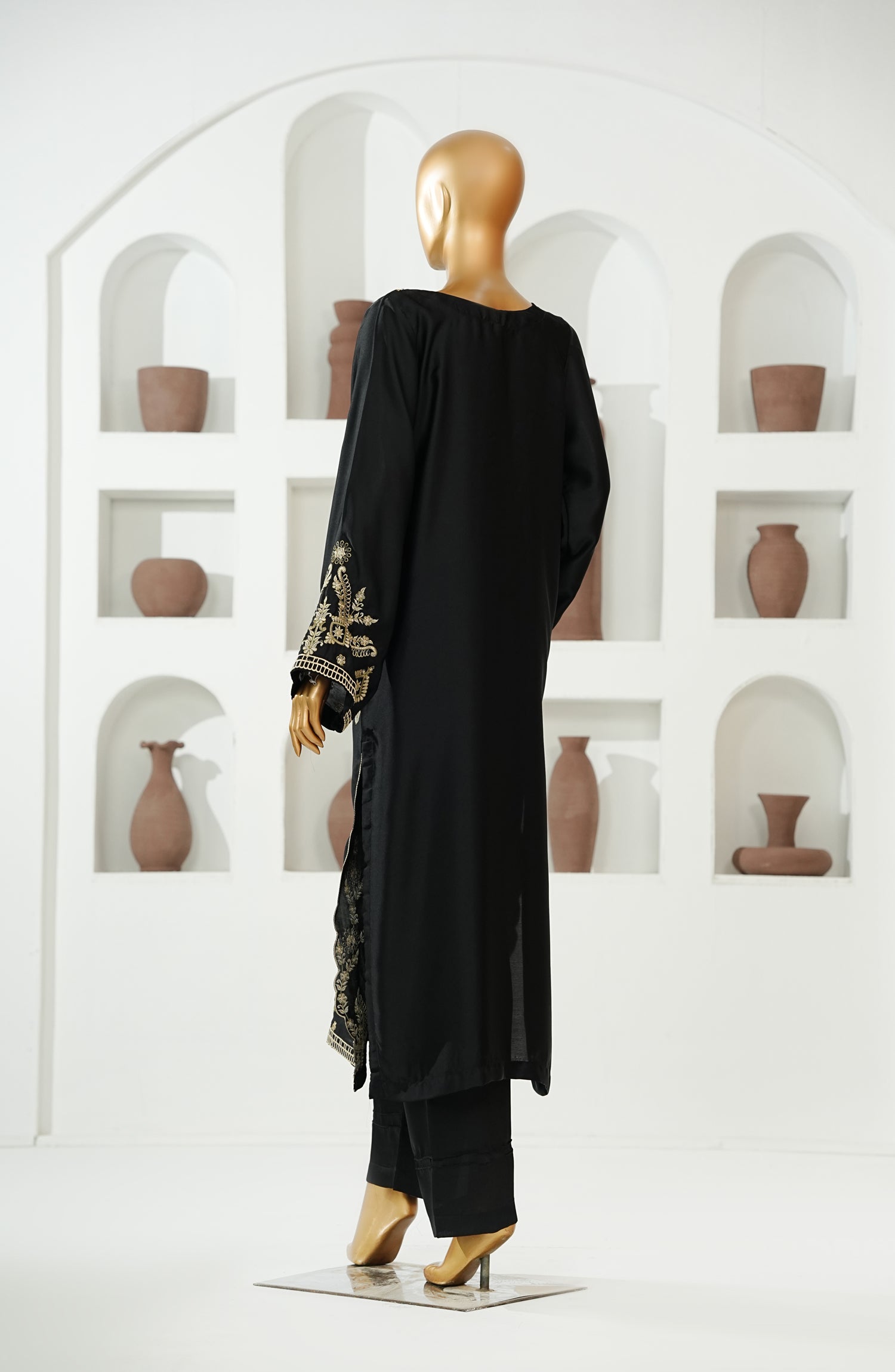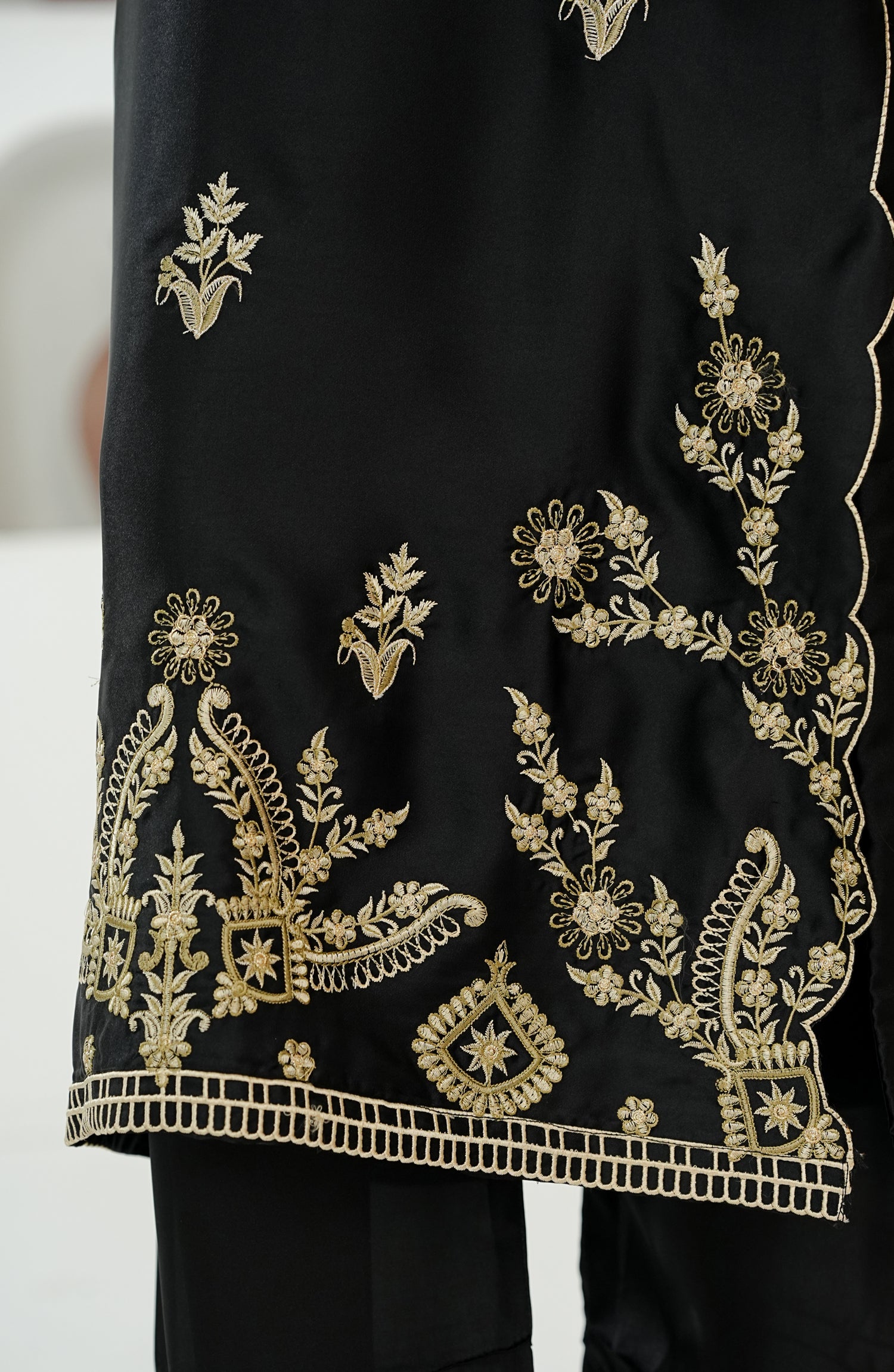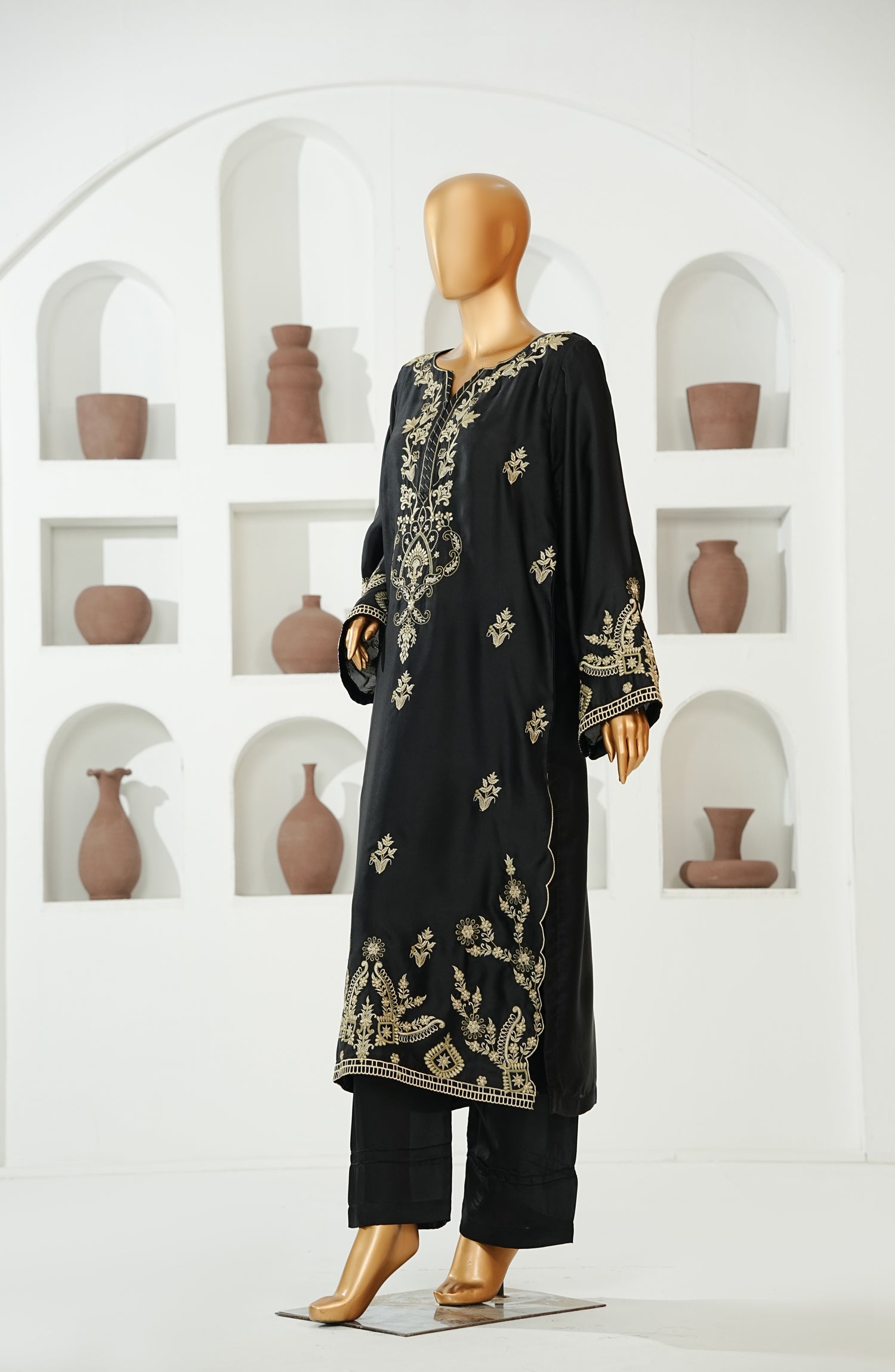 Stitched Shamooz Silk Shirt with Resham Embroidery and Embellishments