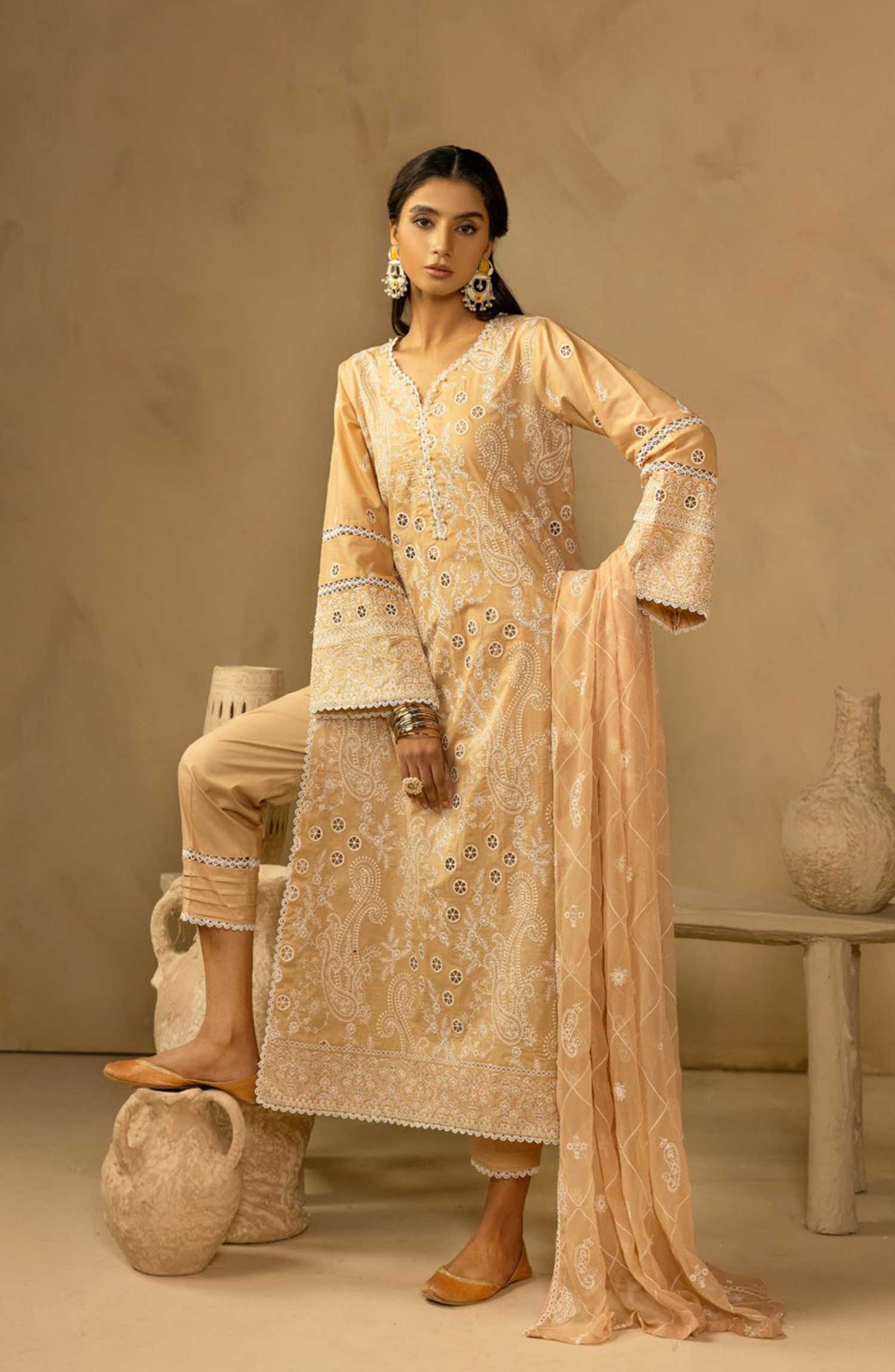 Home Khoobsurat Chikankari Lawn Unstitched 3 Piece - SK-33 - K25CL - Peach - Summer Collection