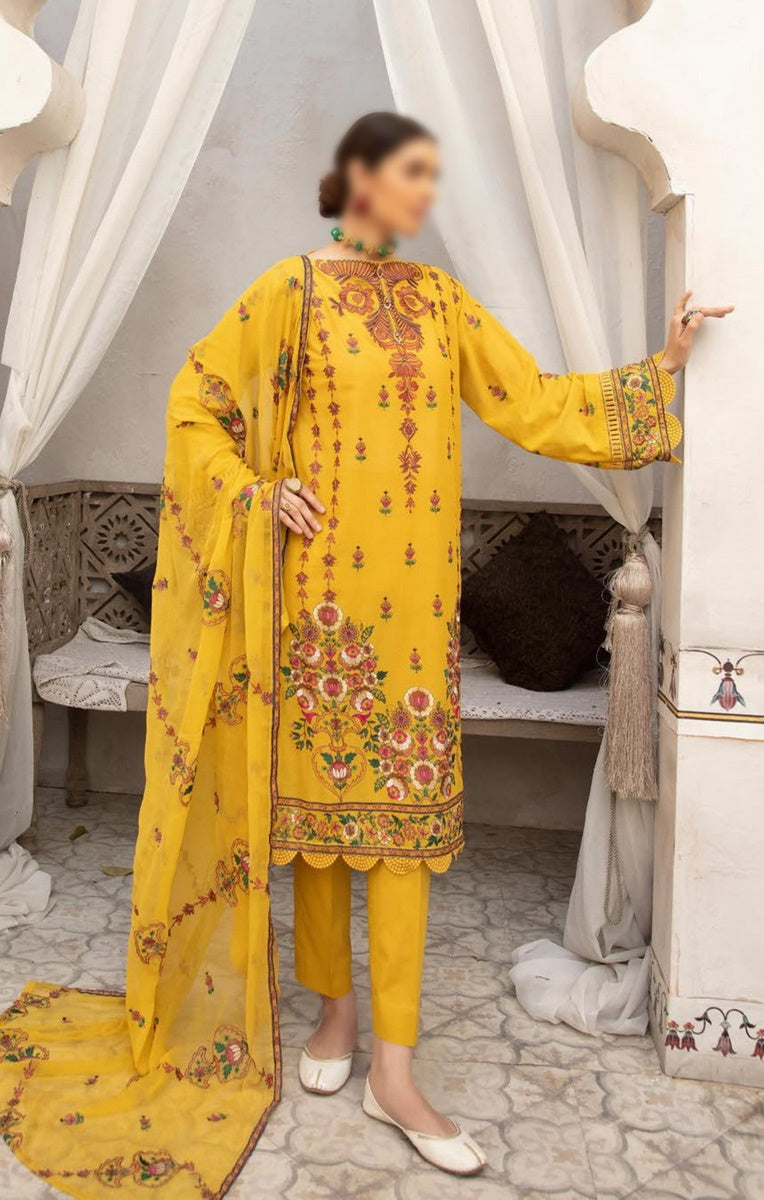 The standard style comes as a long-sleeved kameez with dupatta and trouser/shalwar.