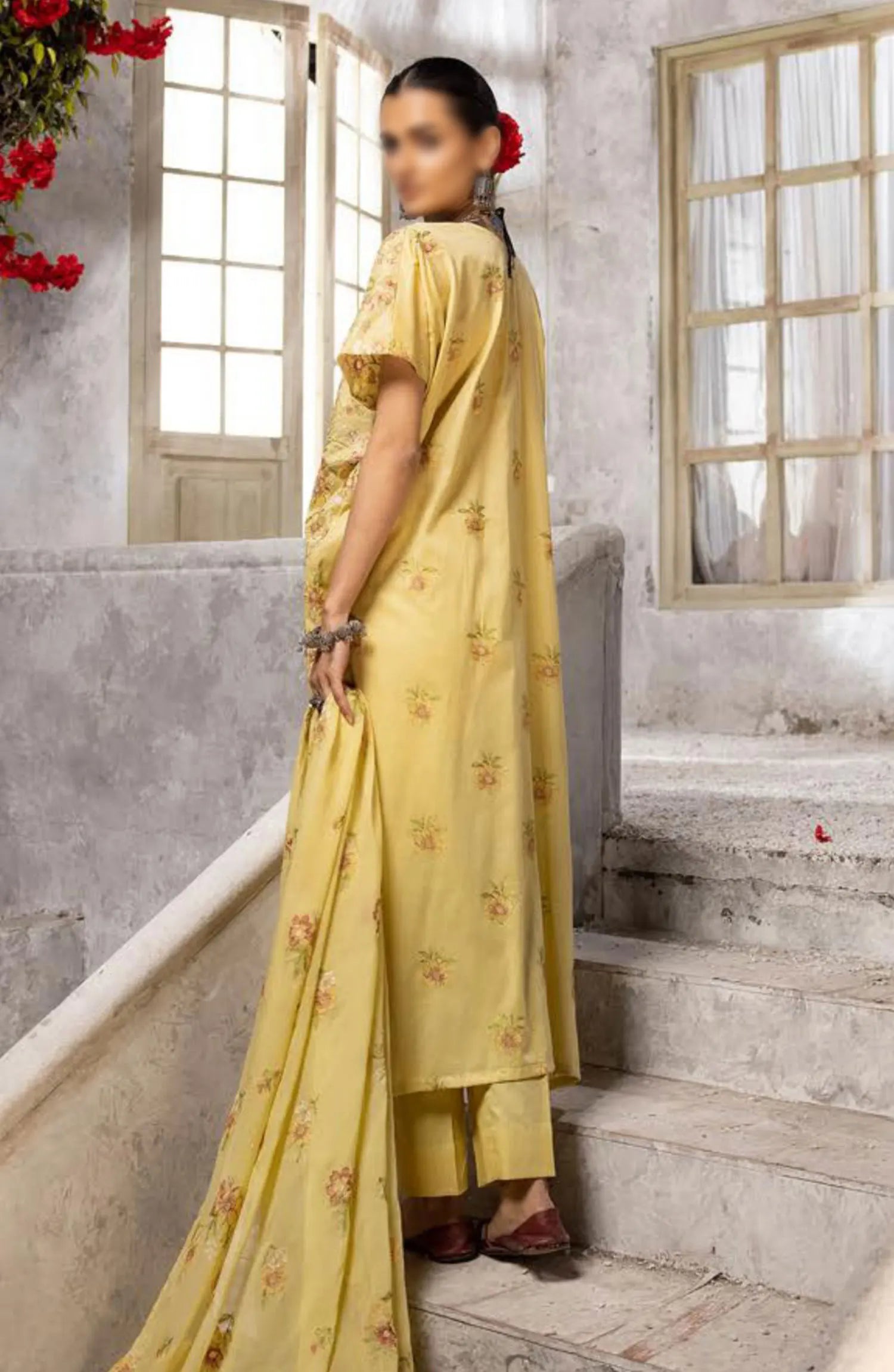 Shanzey Printed Cambric Stitched 3 Piece Suit - SHK-4903 - SHZ25CAM - Lemon - Girls Winter Collection