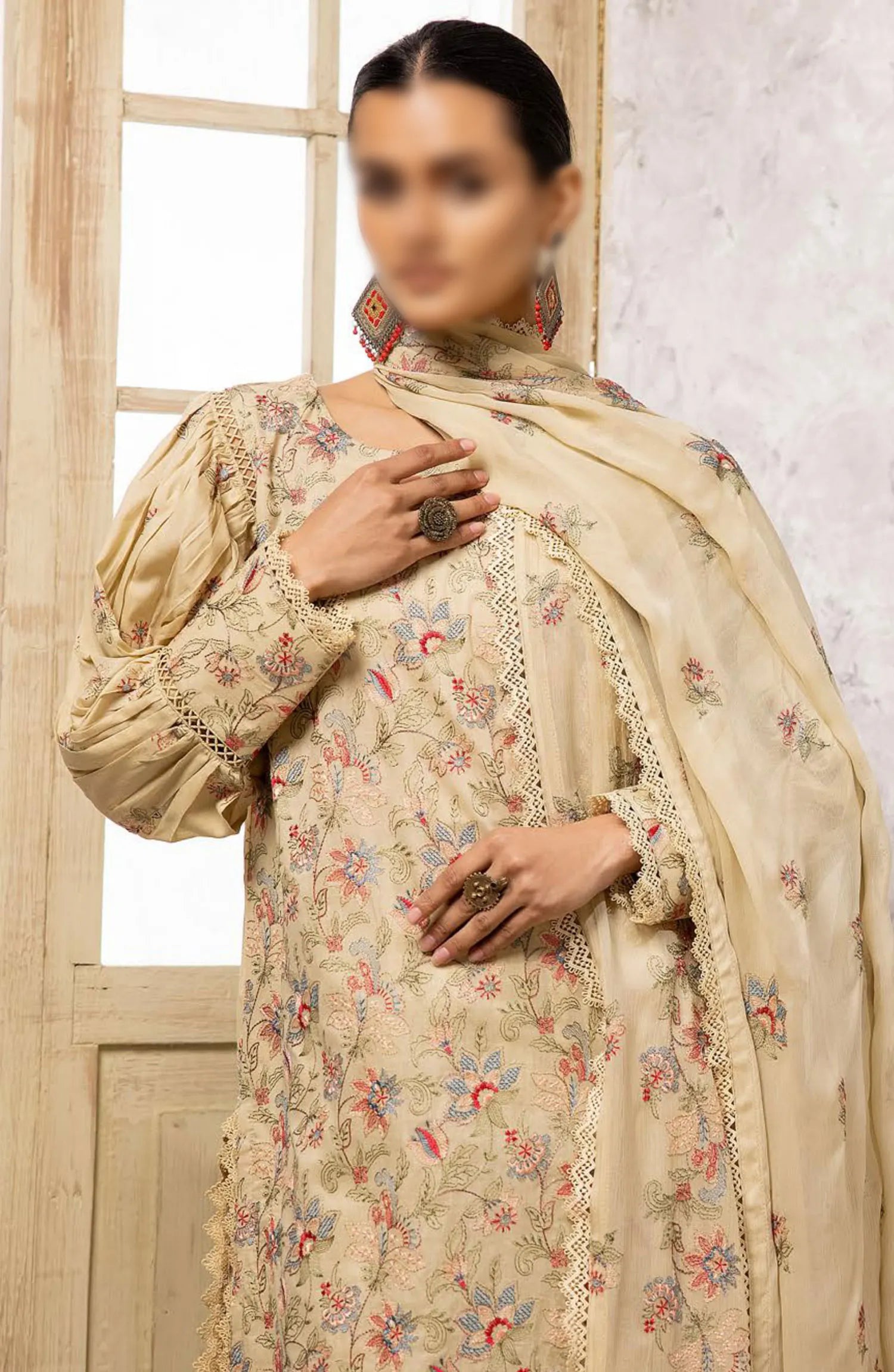 Shanzey Printed Cambric Stitched 3 Piece Suit - SHK-4901 - SHZ25CAM - Off White - Girls Winter Collection