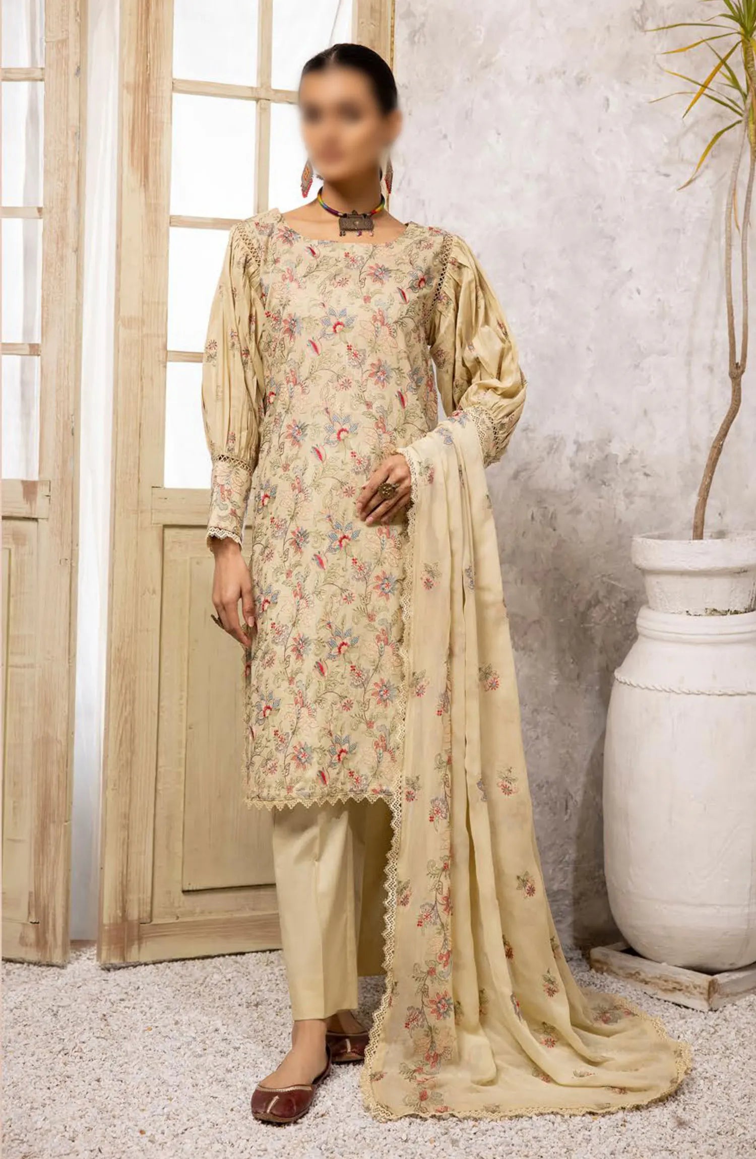 Shanzey Printed Cambric Stitched 3 Piece Suit - SHK-4903 - SHZ25CAM - Lemon - Girls Winter Collection