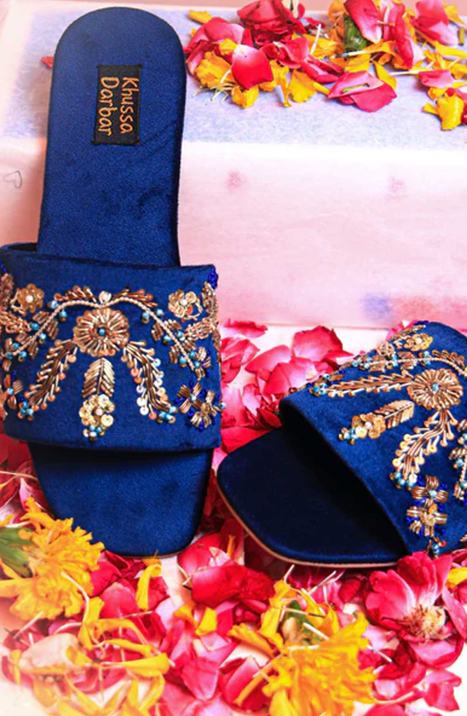 Beautifully handcrafted with salma, dabka, and colorful vibrant beads on royal blue velvet.