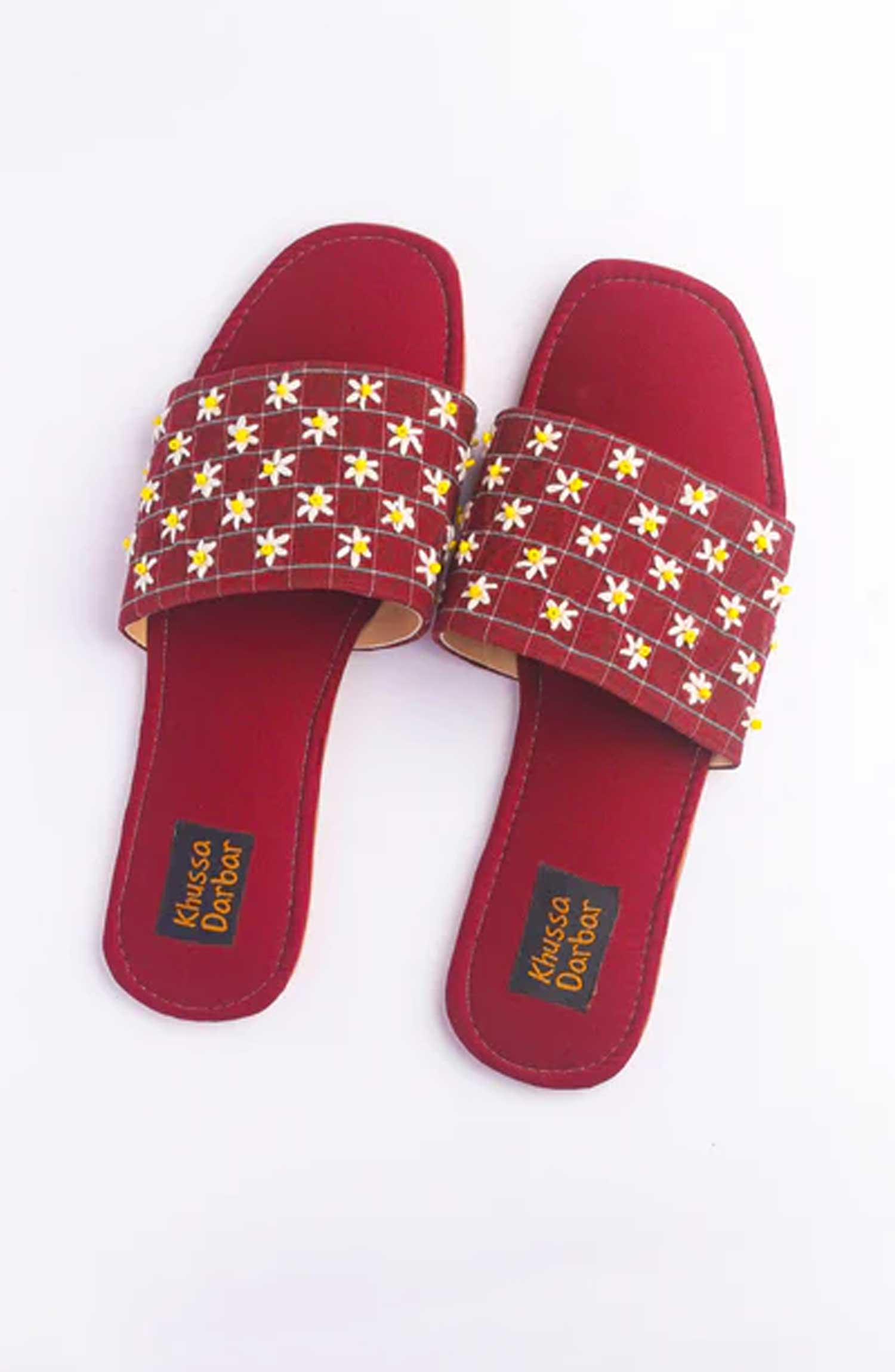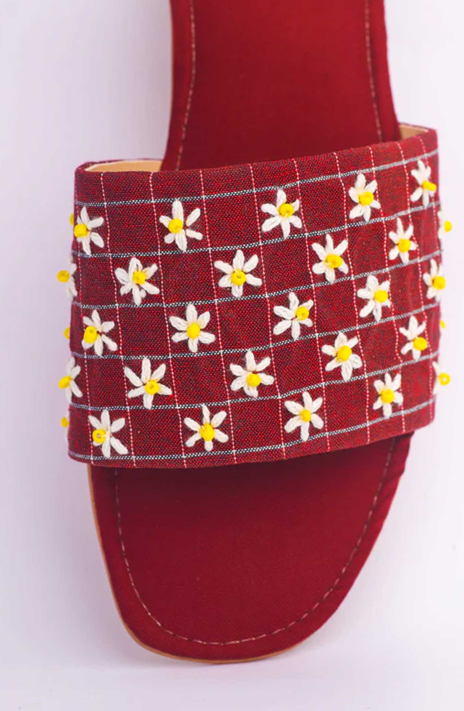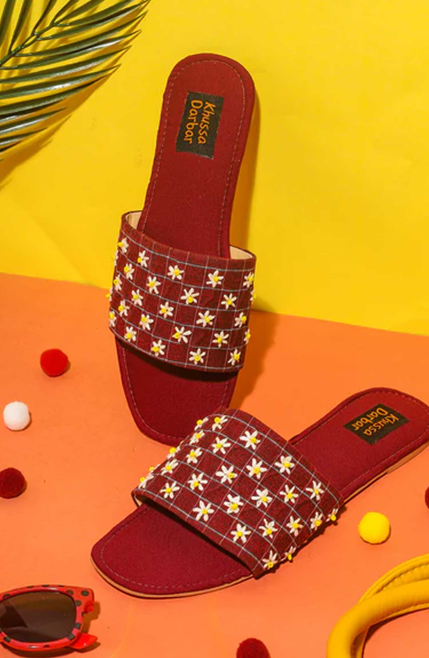 Jasmine symbolizes beauty, purity and simplicity. These pretty handcrafted white jasmine flowers on a maroon check print features elegance, beauty and refreshing summer look