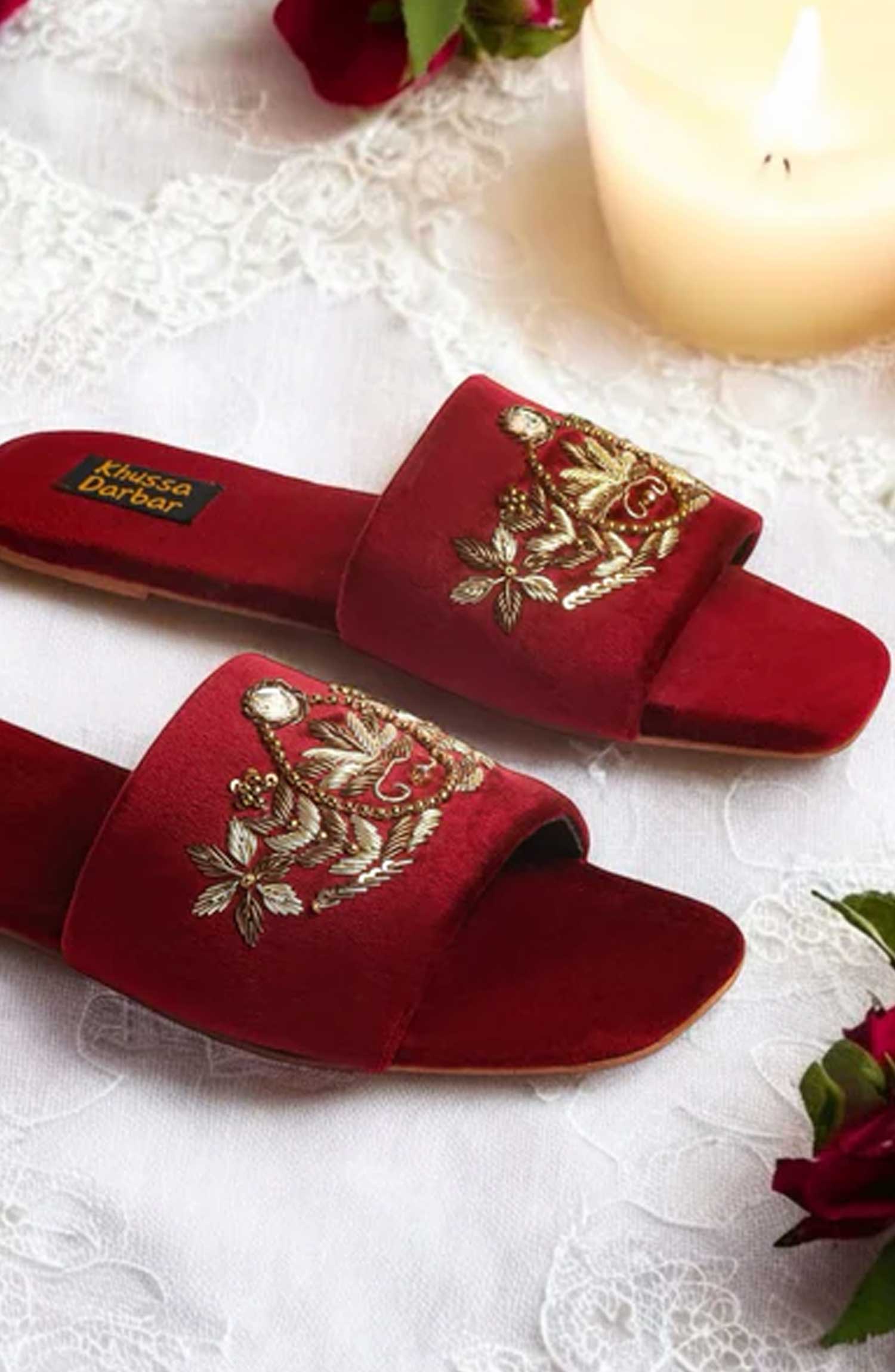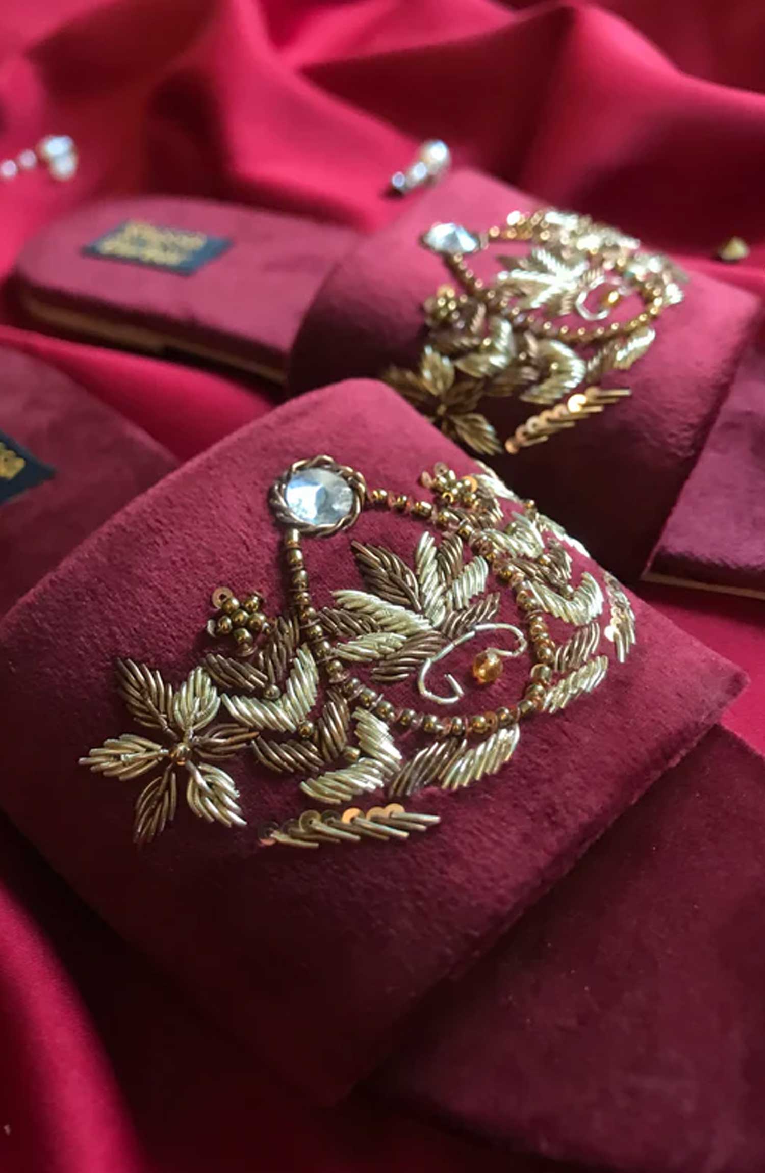 Beautifully handcrafted with salma and dabka work on maroon velvet