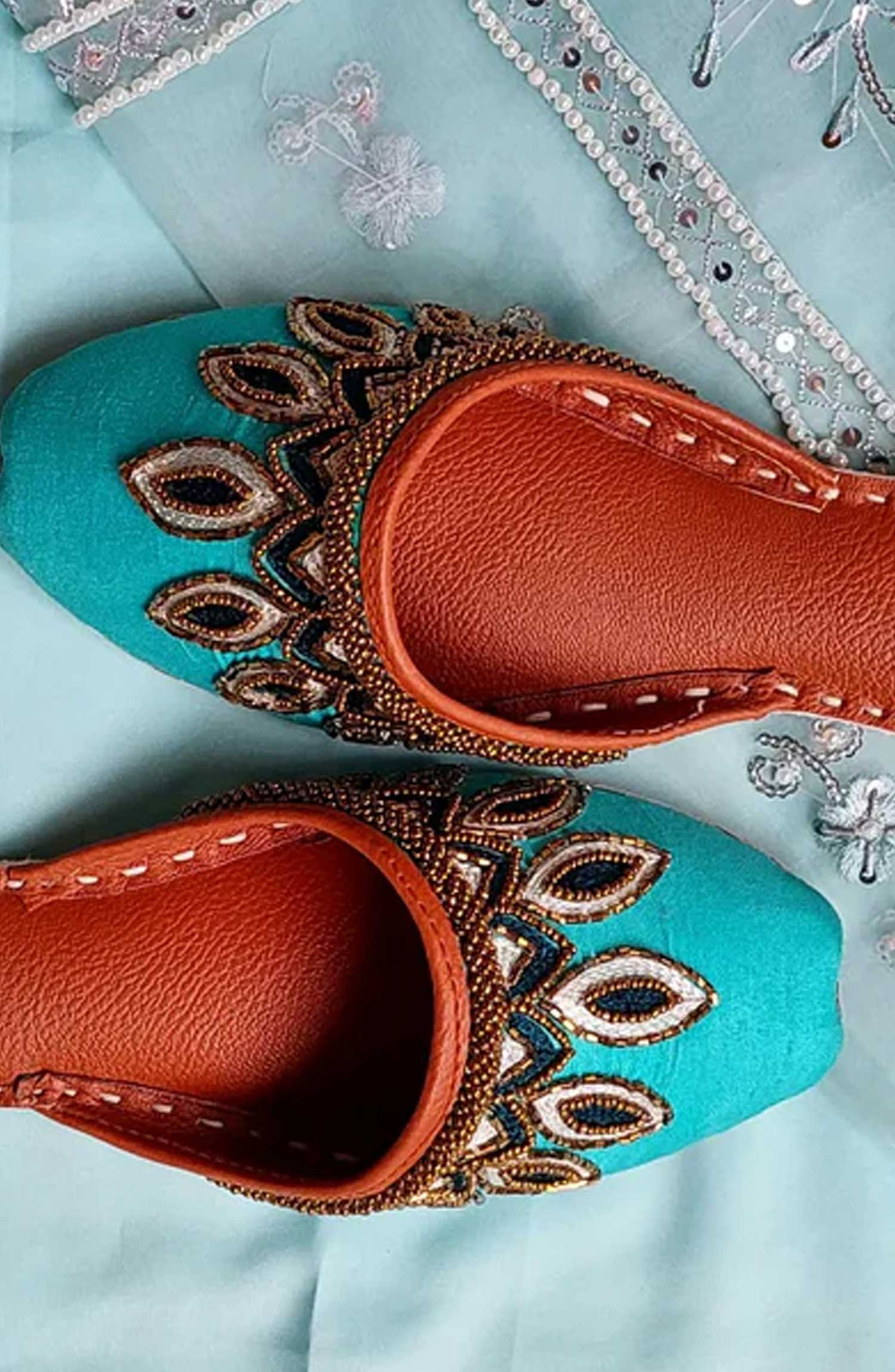 Handcrafted with resham, cut-daana along with beads on a deep blue ocean color
