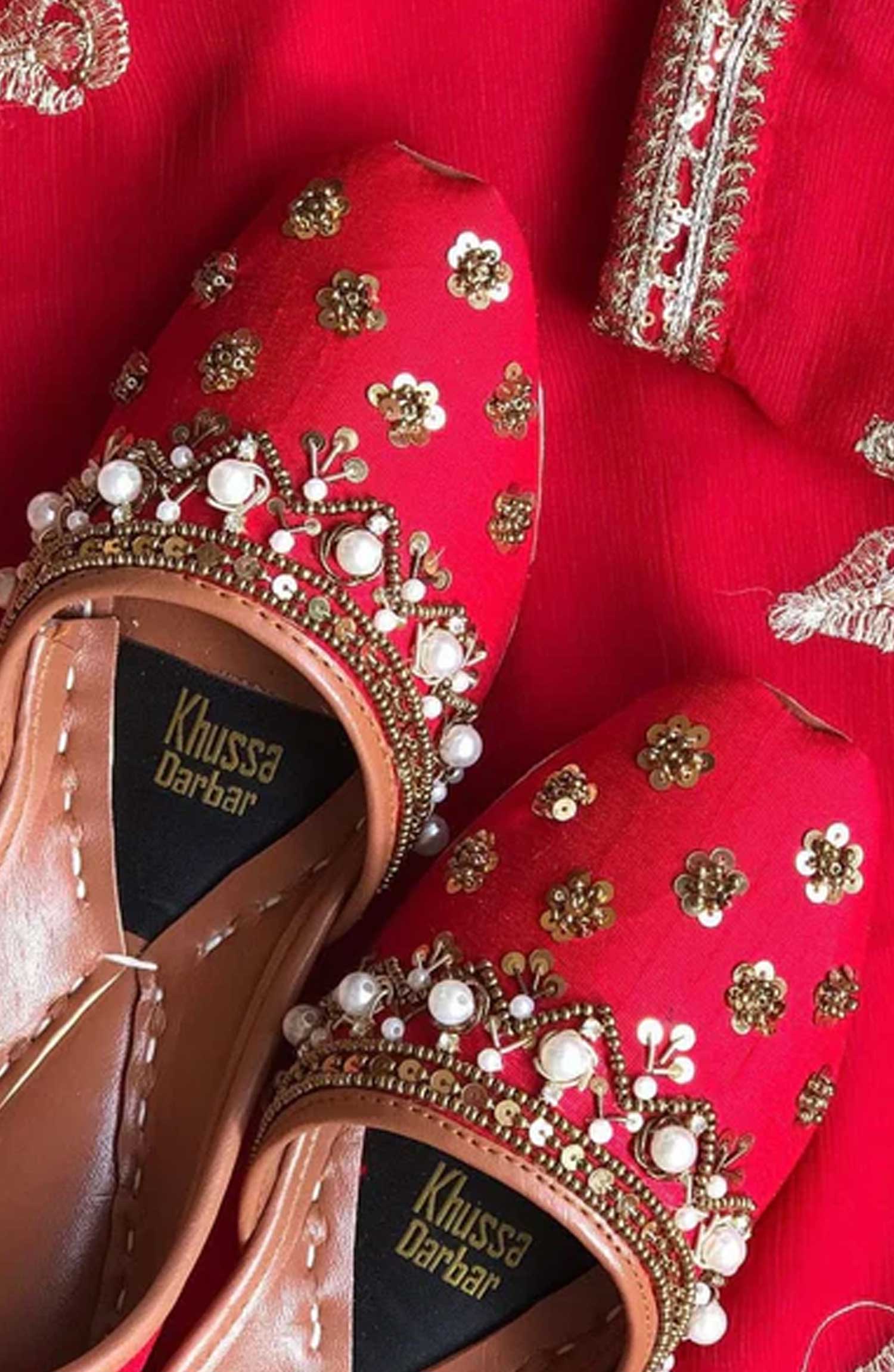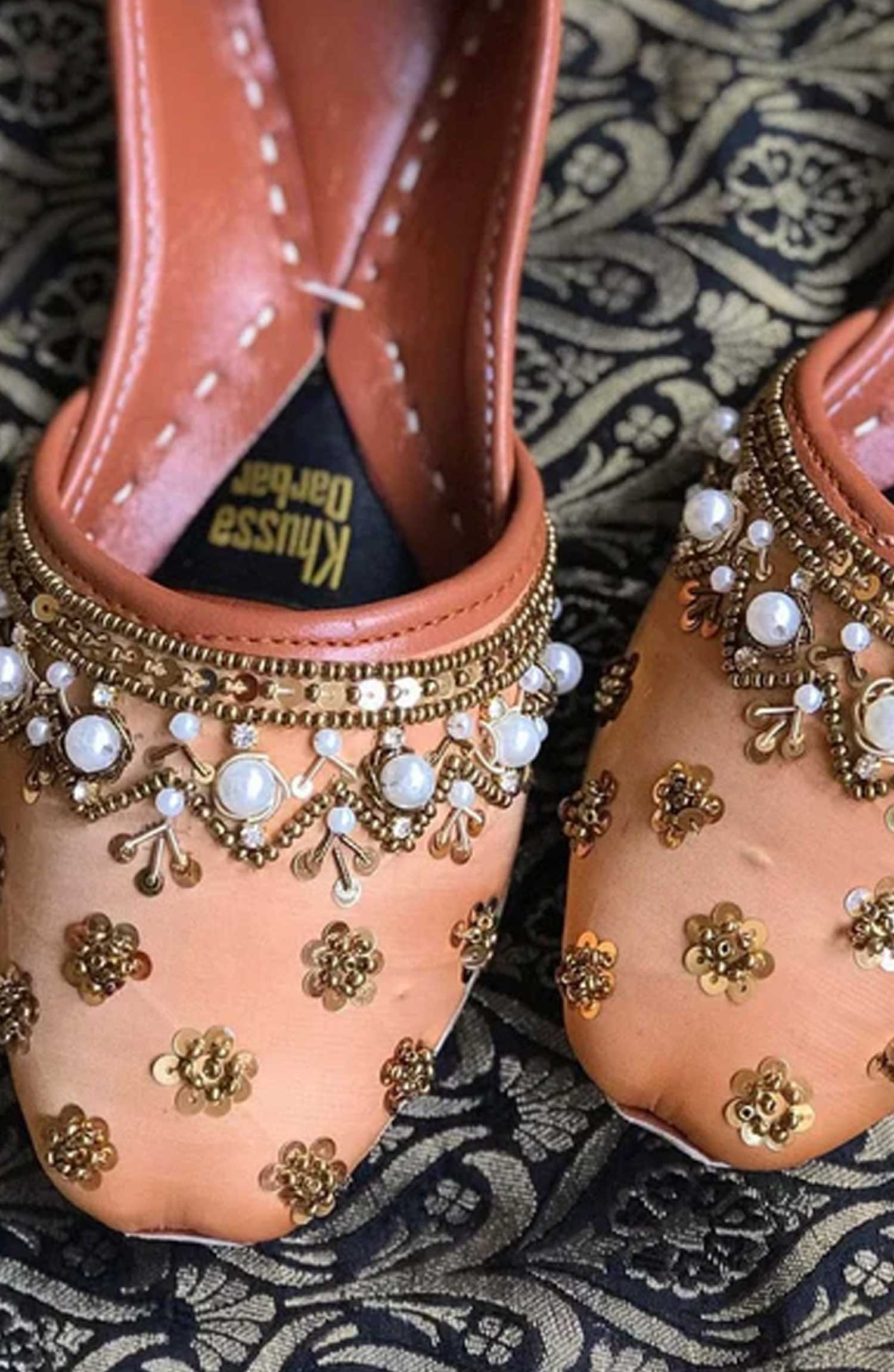 Beautiful blend of kora dabka, golden cut-daana, sequins and semi-precious pearls.