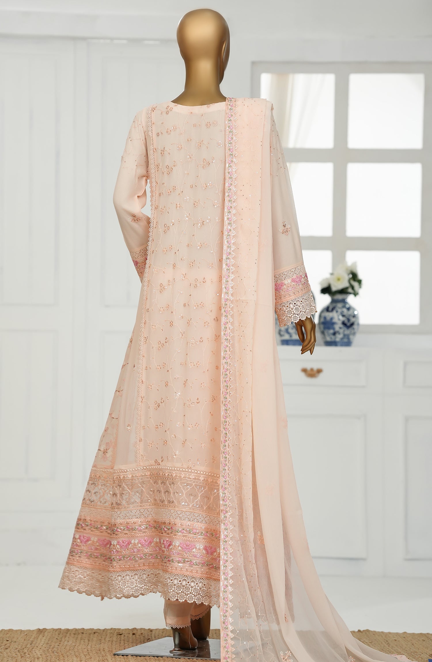 Home Khwabeeda by Maria Fabrics Embroidered Chiffon Stitched 3 Piece Suit - Layaan - MRF25KH - Pink - Formals Collection