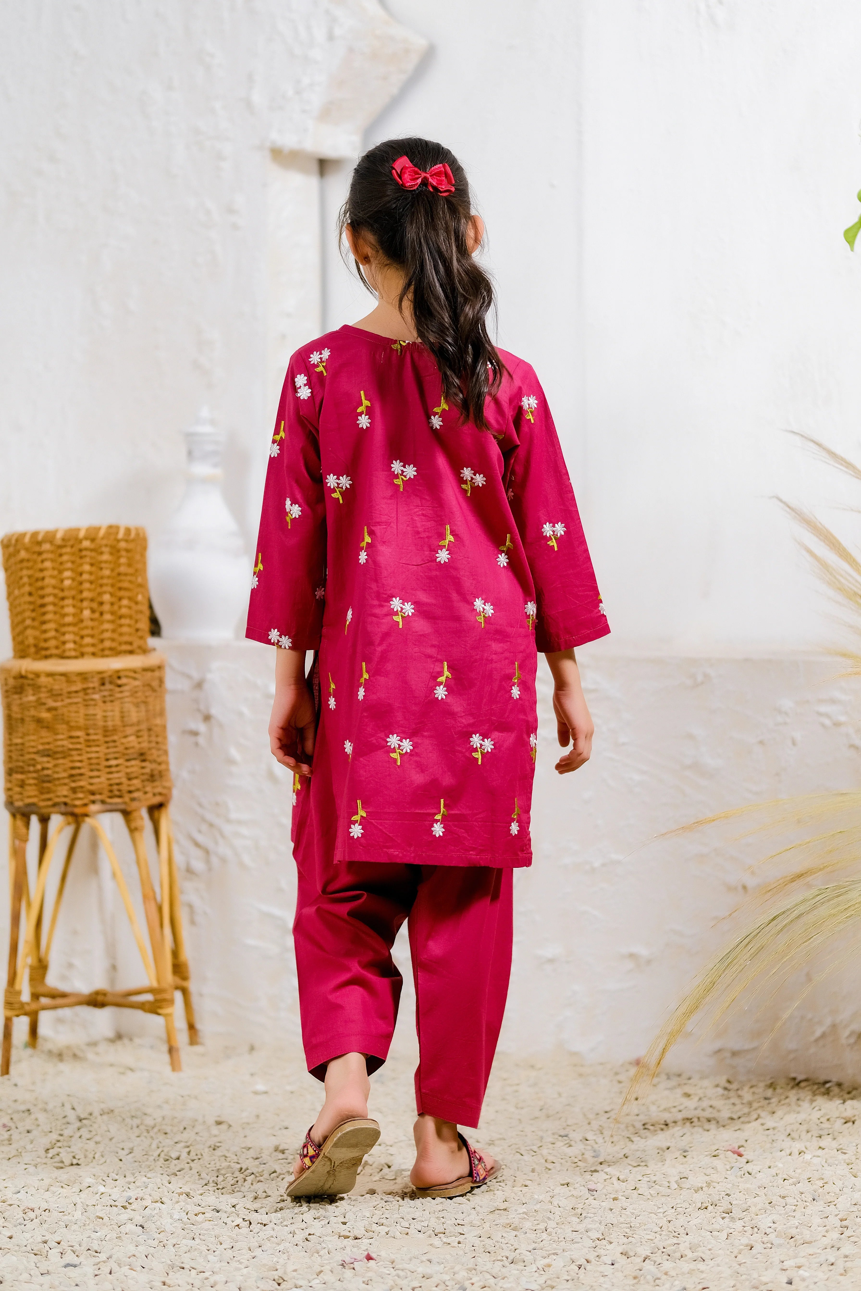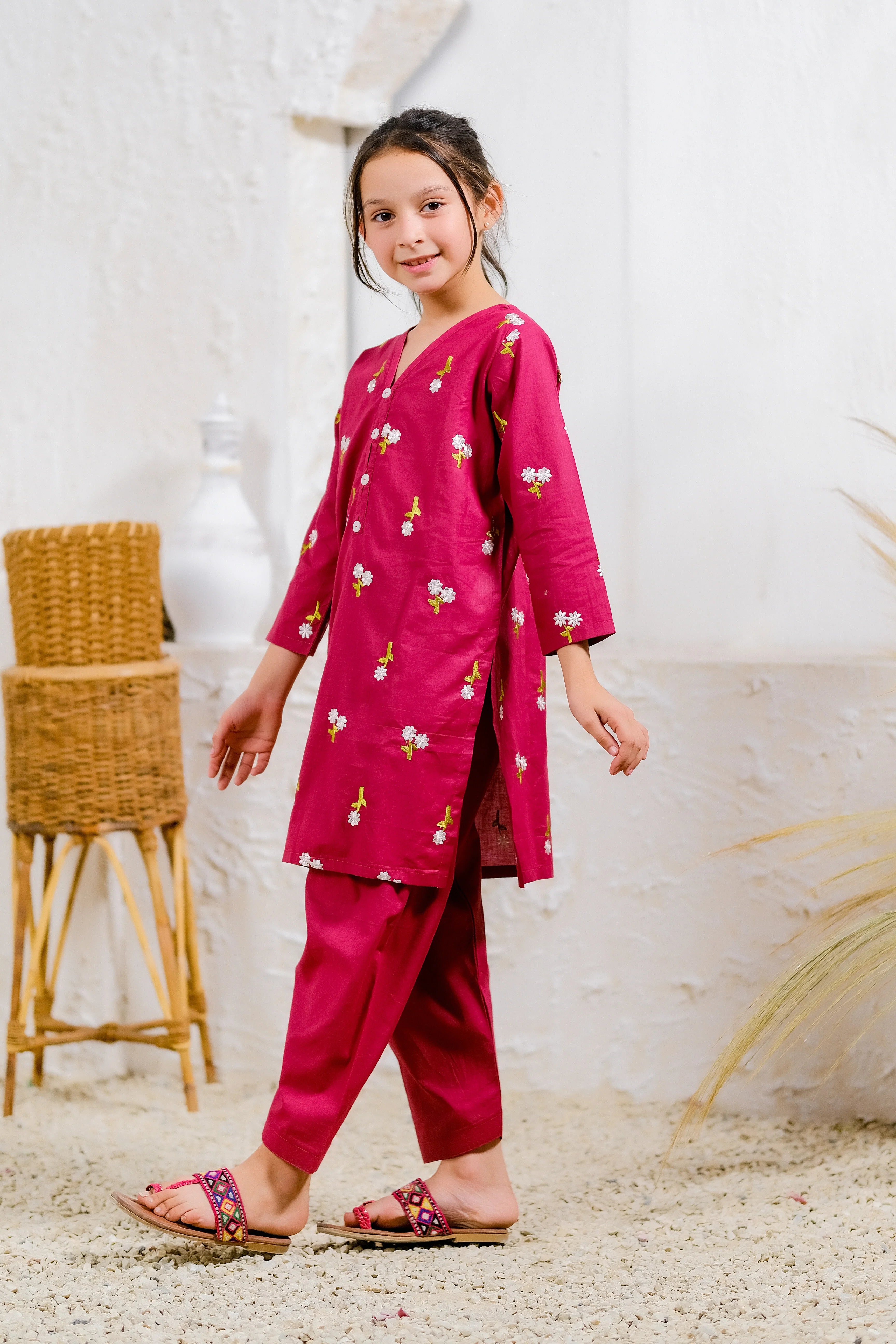 Kids 2 pc Ready to wear - Embroidery - Berry Blossom - 2pcs - Embroidered
