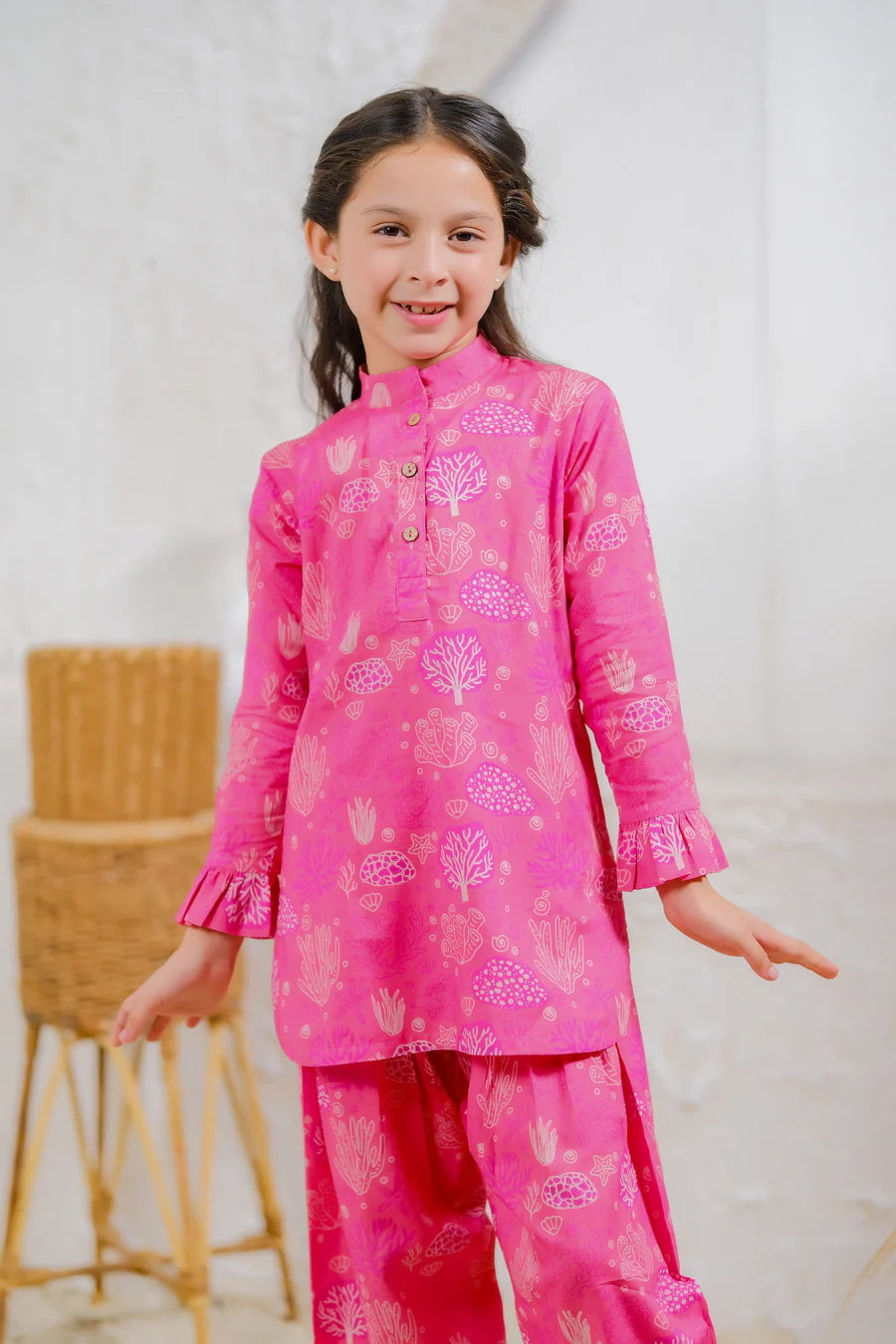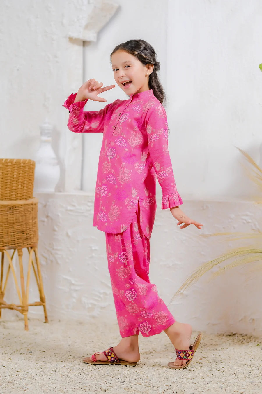 Let your child embrace nature with this light blue floral printed 2-piece lawn set. Its soft and relaxed silhouette offers maximum comfort while keeping your little one stylish during playdates or casual outings.