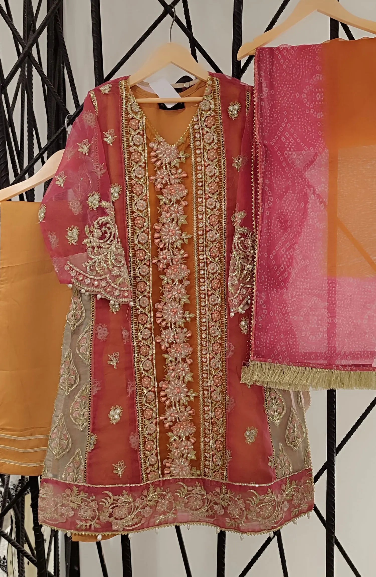 Organza embroidered shirt enhanced with hand crafted adda work