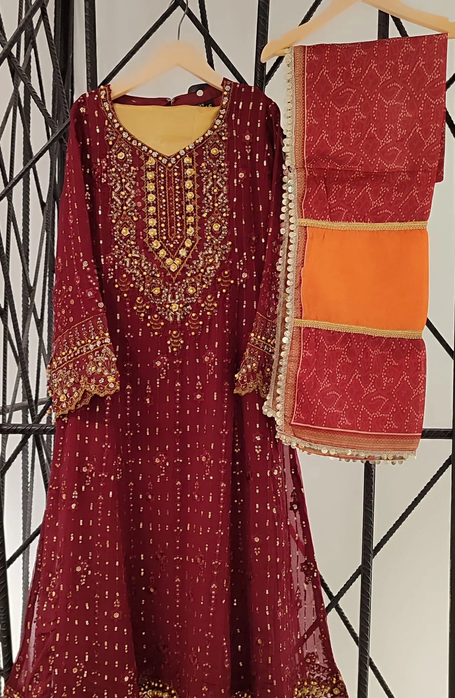 Chiffon embroidered maxi enriched with gotta patti and pearls