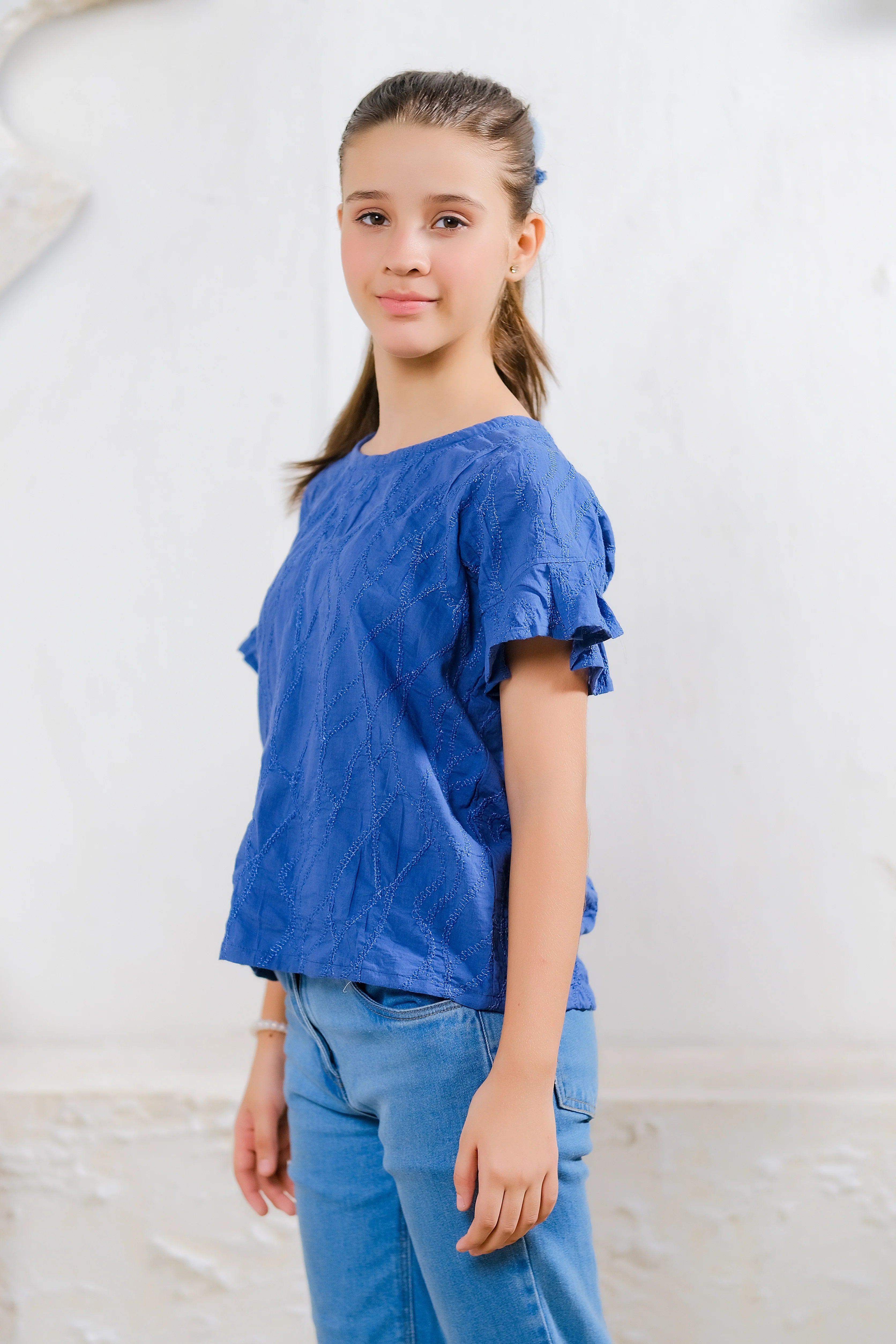 A navy blue top with a subtle diamond textured pattern. The understated design makes it a versatile piece that can be dressed up or down for any occasion.