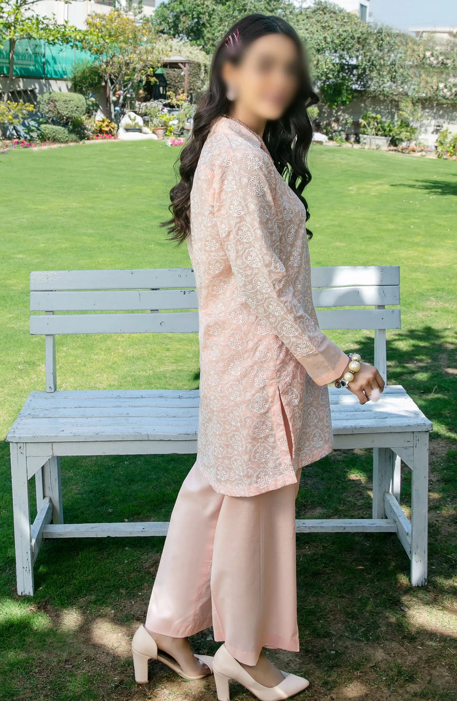 Kiraz Schiffli Jaal Embroidered Slub Lawn 2-pcs Collection 2024 has been styled in the image for photography and illustrative purposes.