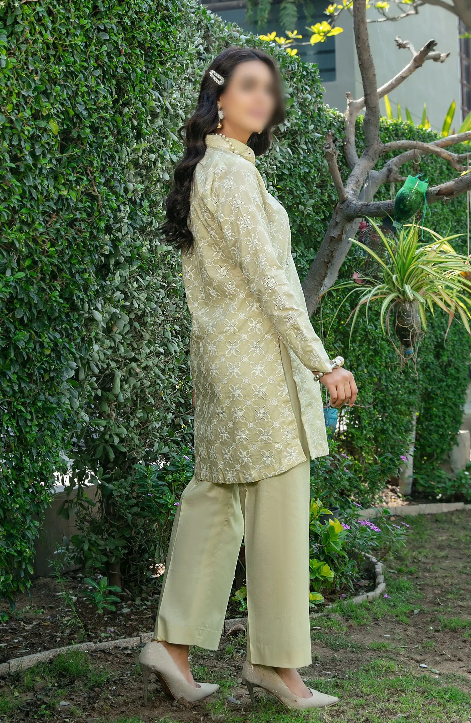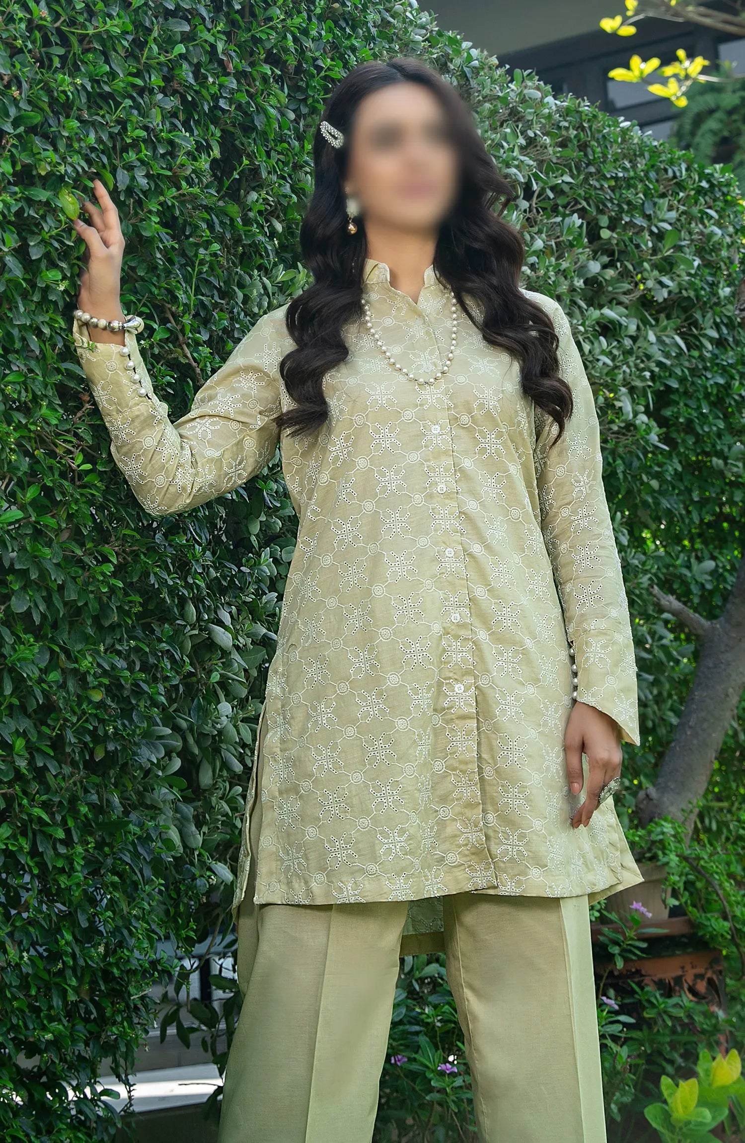 Kiraz Schiffli Jaal Embroidered Slub Lawn 2-pcs Collection 2024 has been styled in the image for photography and illustrative purposes.