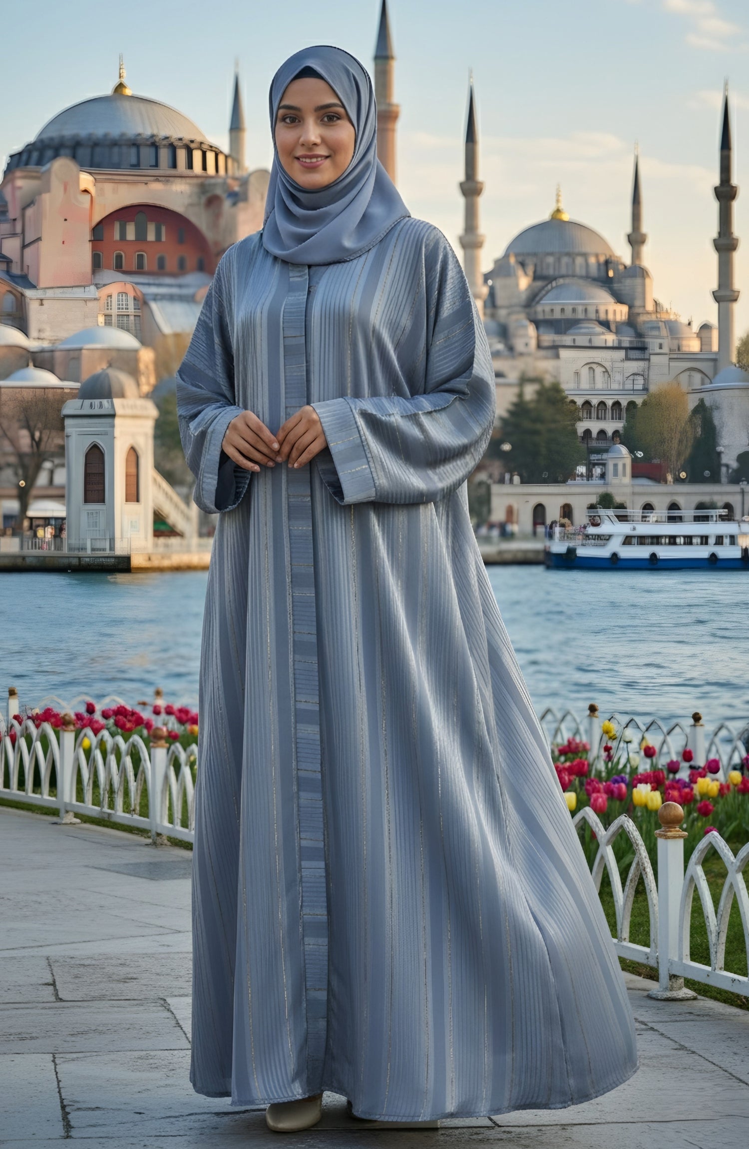 Front-Open Straight-Cut Silhouette without Dupatta Premium Zoom Nidha Abaya - Desire Grey